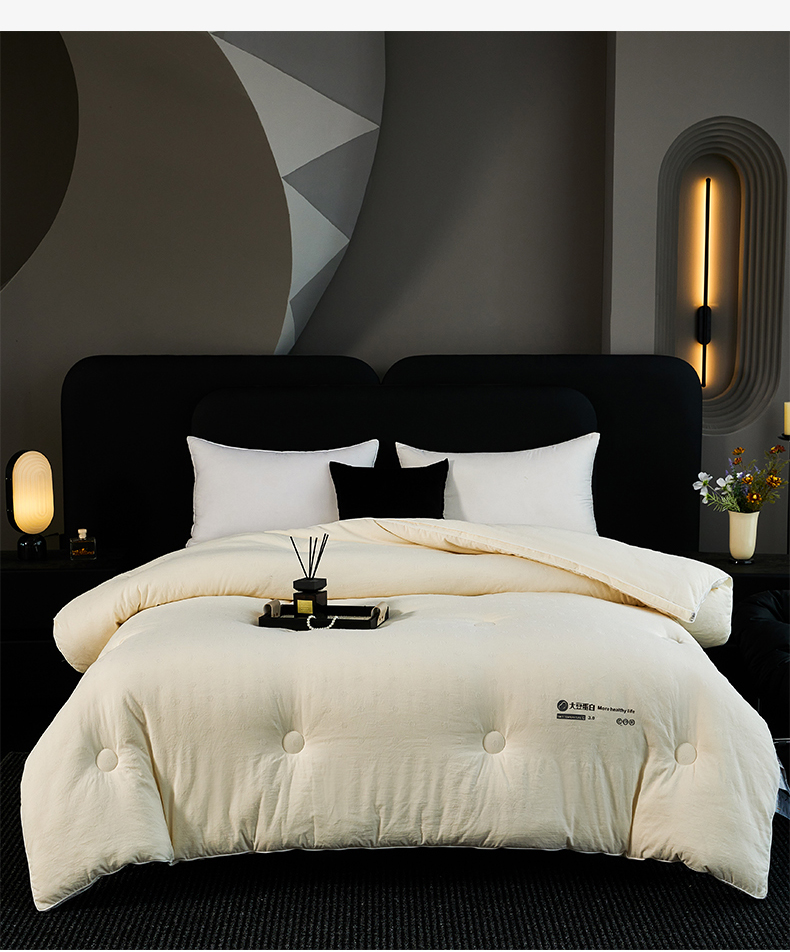 • 91家纺网 家纺一手货源 找家纺 蓝雀翎 2025新款原棉提花大豆被被子被芯 奶油白