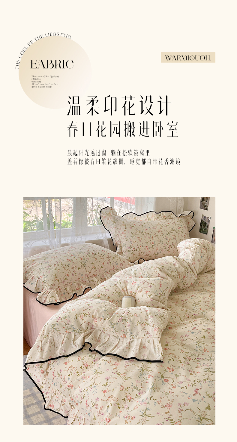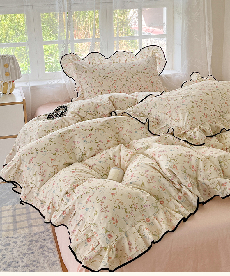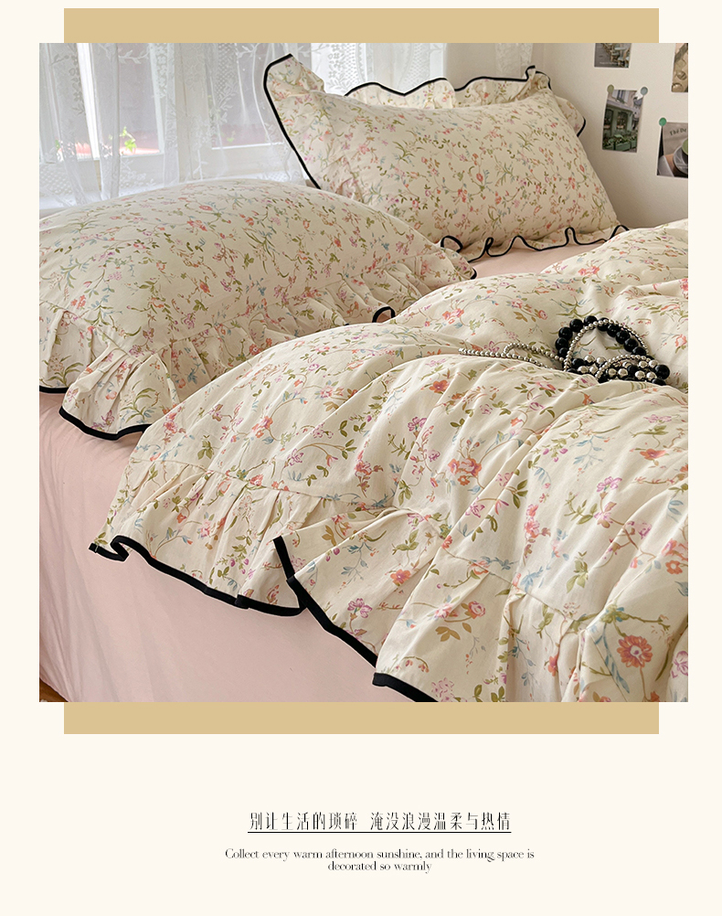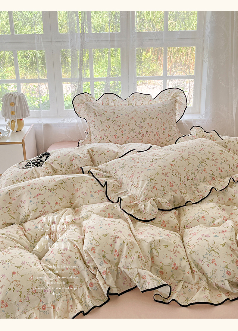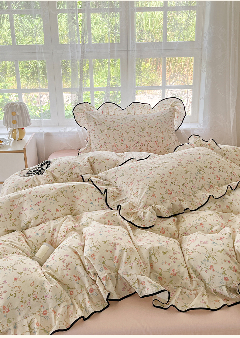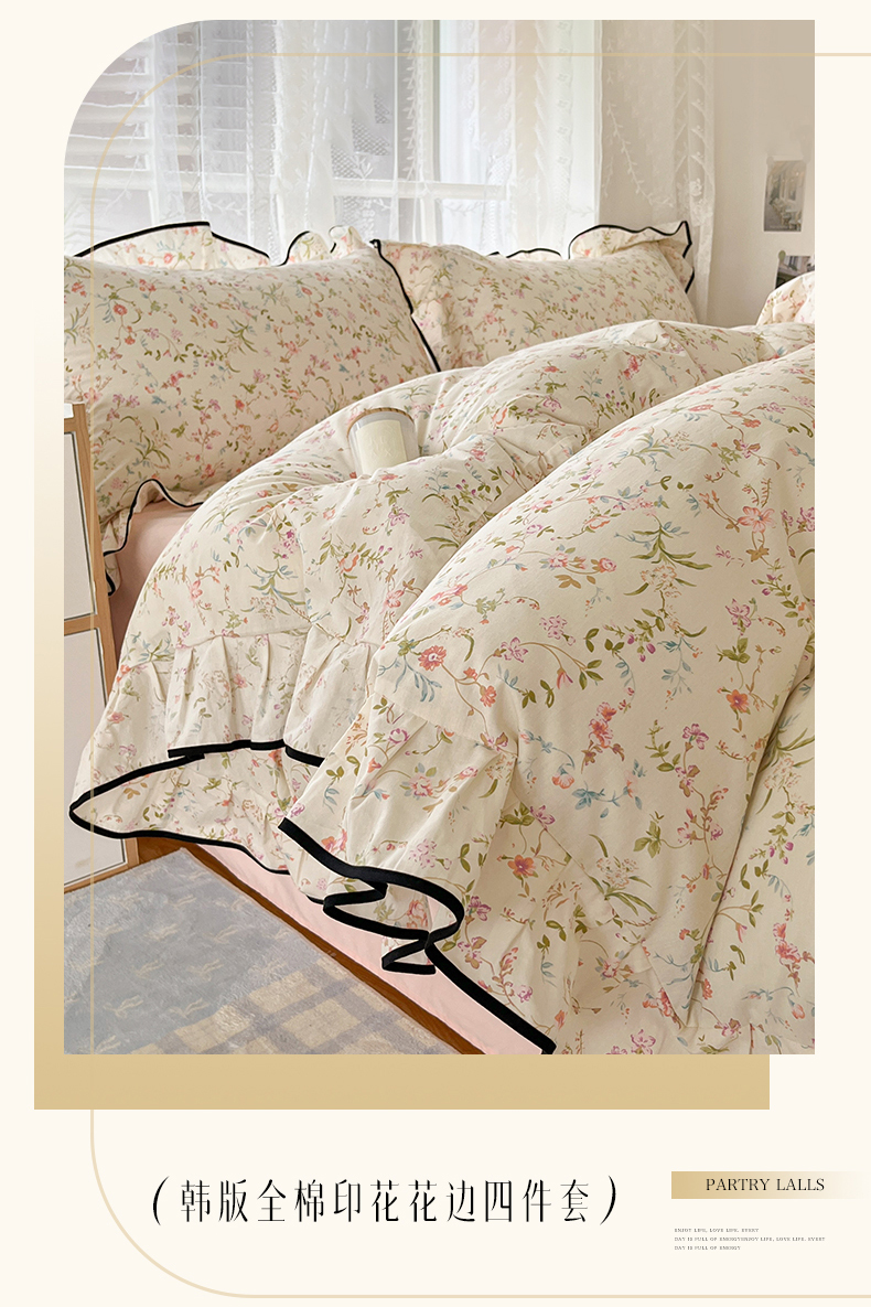 当前位置: 91家纺网 > 商品网购 > 床品套件 > 四件套 > 全棉普通四件套 > 乐美家纺 2025新款韩版全棉纯棉印花花边四件套 花蔓梦境