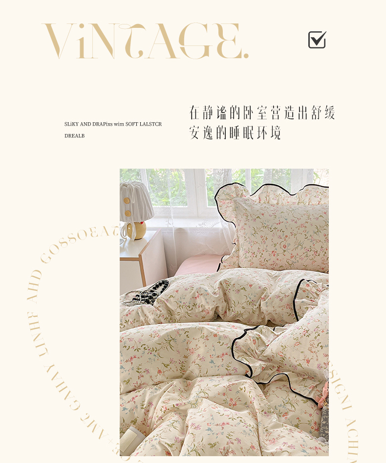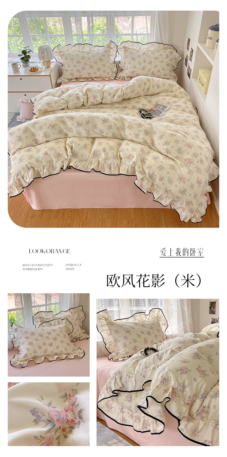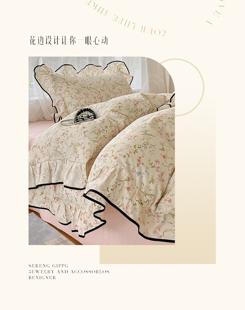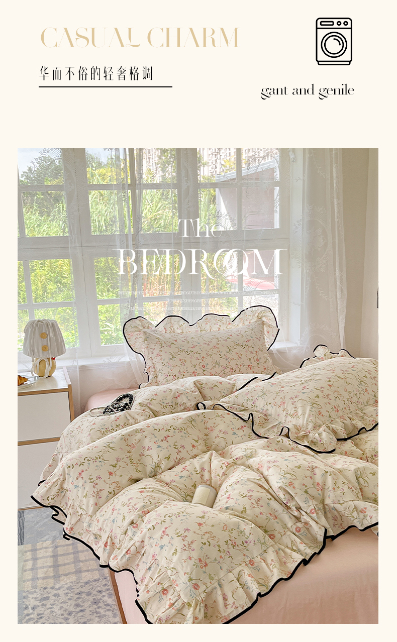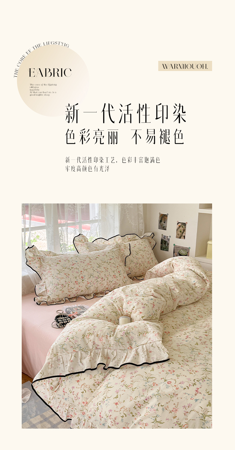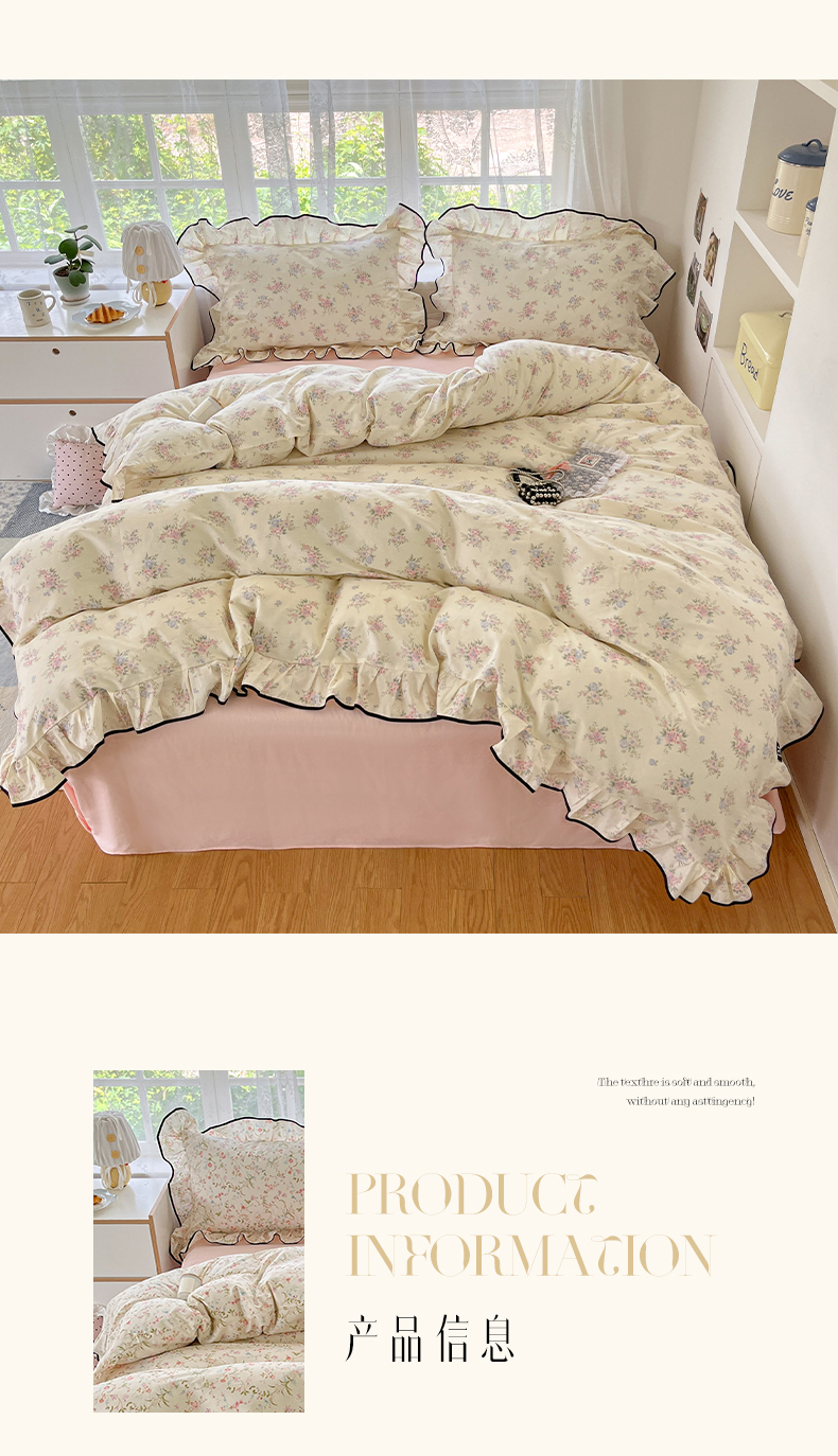 当前位置: 91家纺网 > 商品网购 > 床品套件 > 四件套 > 全棉普通四件套 > 乐美家纺 2025新款韩版全棉纯棉印花花边四件套 花蔓梦境