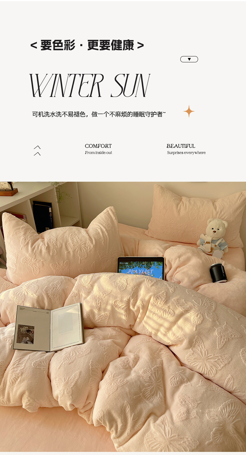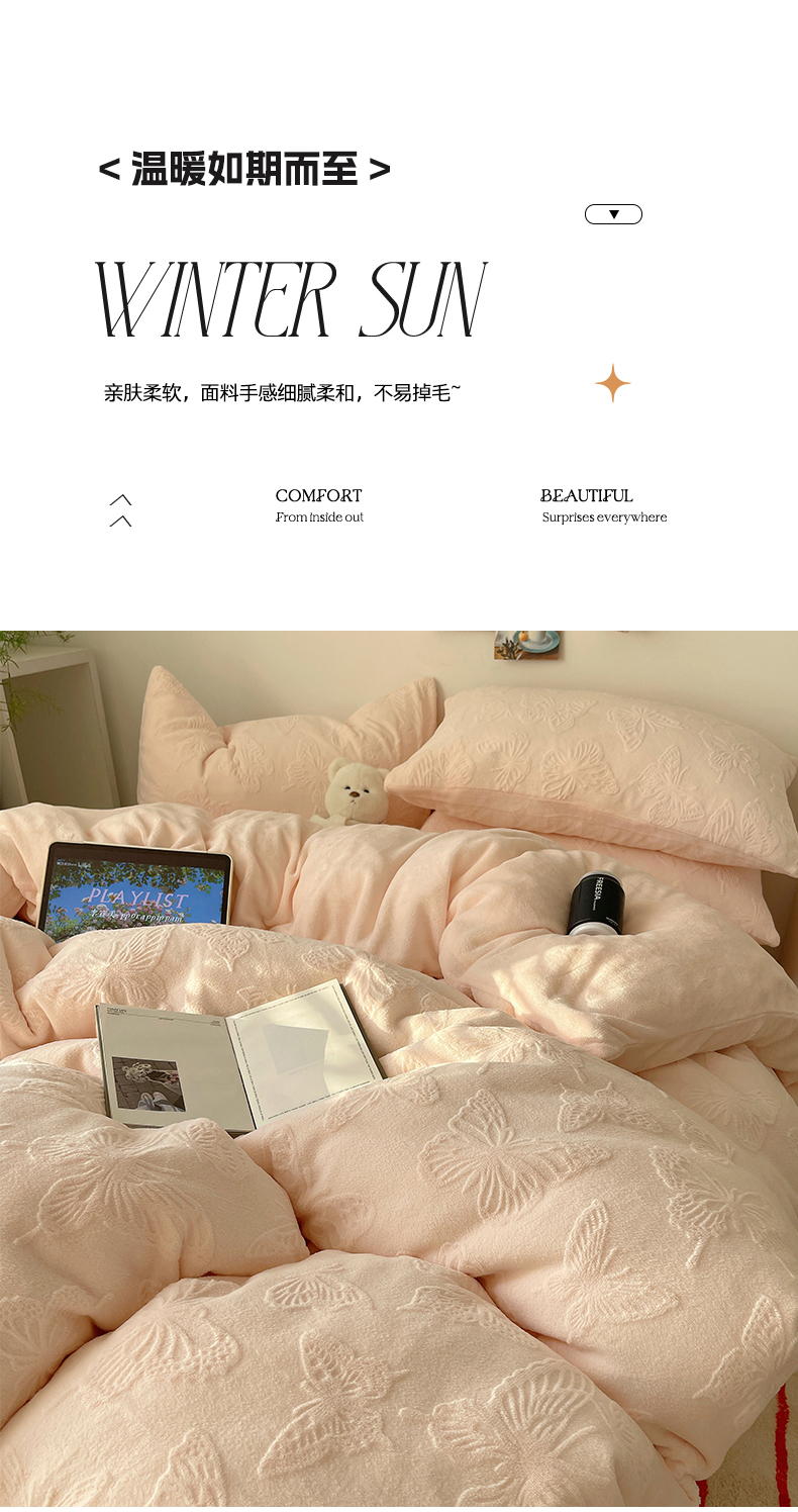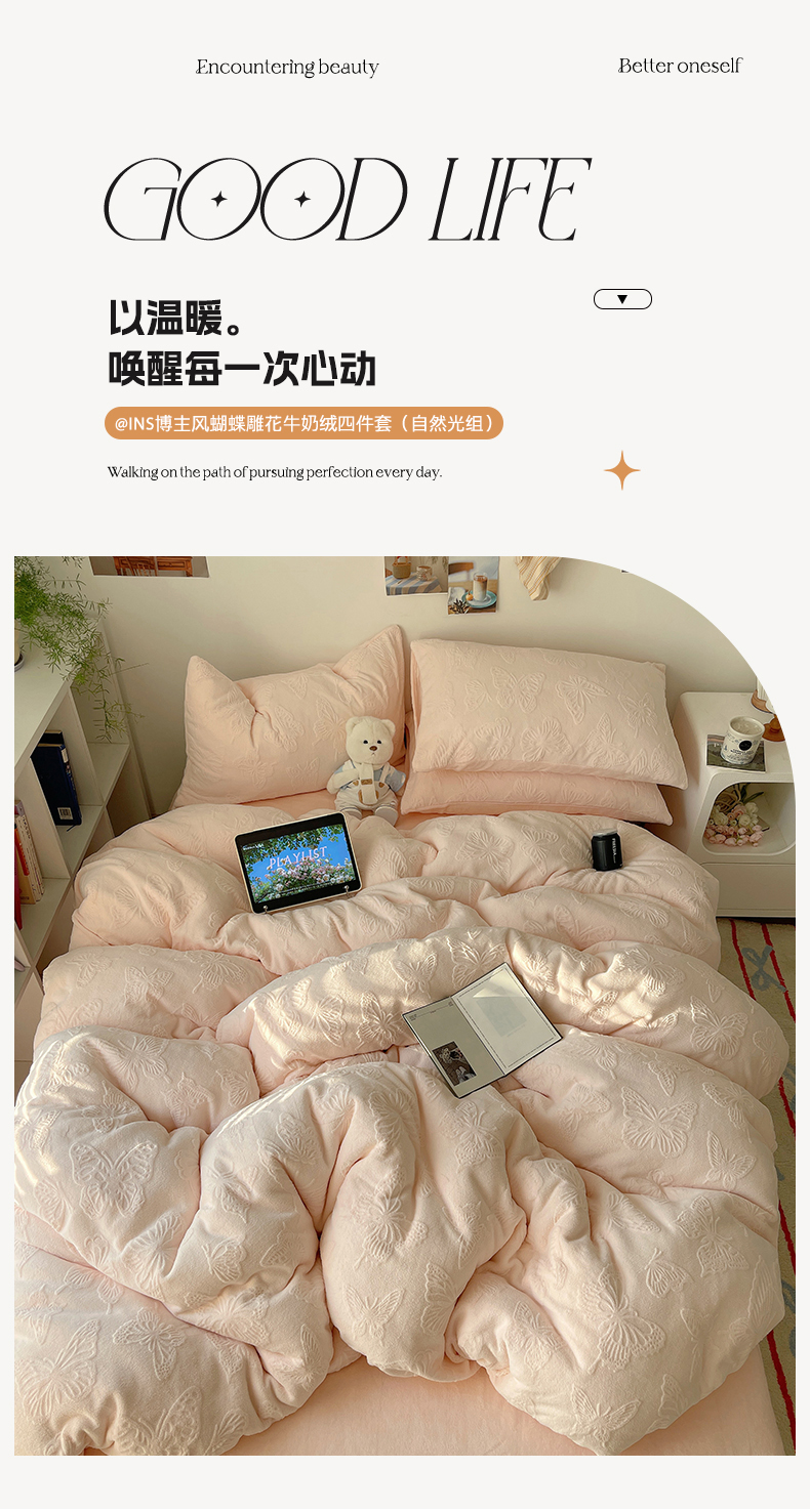 当前位置: 91家纺网 > 商品网购 > 床品套件 > 四件套 > 牛奶绒四件套 > 六巷胡同 2025新款INS博主风蝴蝶雕花A类牛奶绒四件套 雕花绒-蝴蝶粉