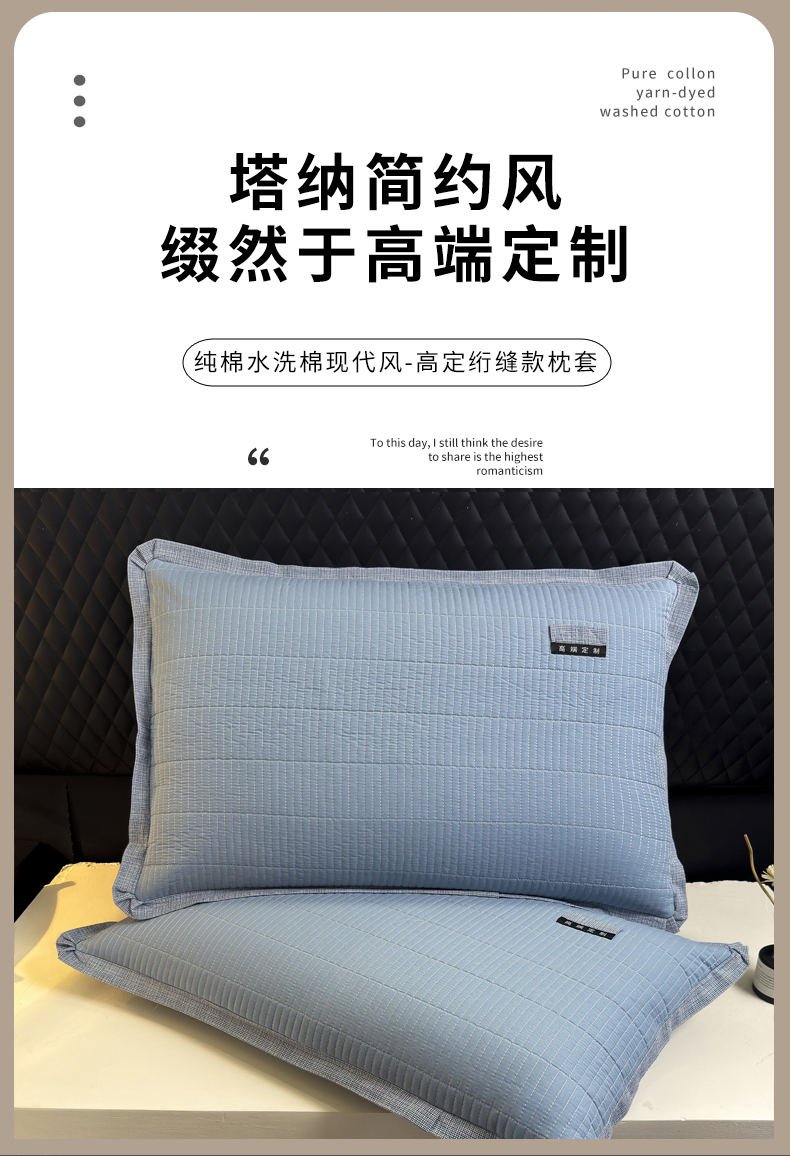 • 91家纺网 家纺一手货源 找家纺 呦呦南宋 纯棉绗缝40x60cm现代风单品枕头套水洗棉中层夹棉拉链款全棉高端定制平边枕套 平边橙