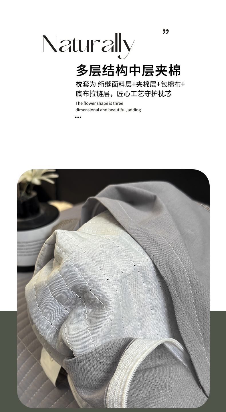 • 91家纺网 家纺一手货源 找家纺 呦呦南宋 纯棉绗缝48x74cm水洗棉枕套中层夹棉单品拉链款一对装全棉高端定制款平边枕套 平边灰