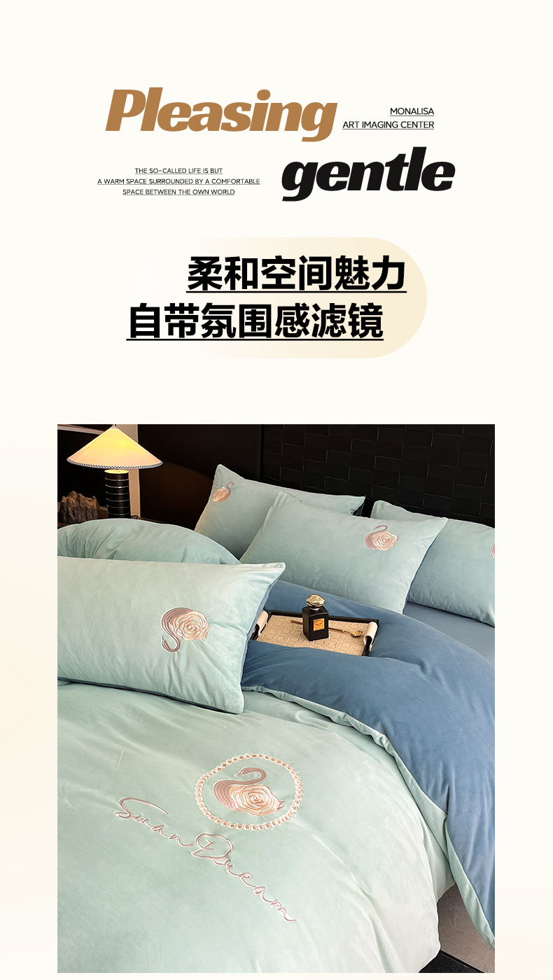 当前位置: 91家纺网 > 商品网购 > 床品套件 > 四件套 > 水晶绒四件套 > 如一 2025新款水晶绒刺绣四件套 天鹅-梵星兰