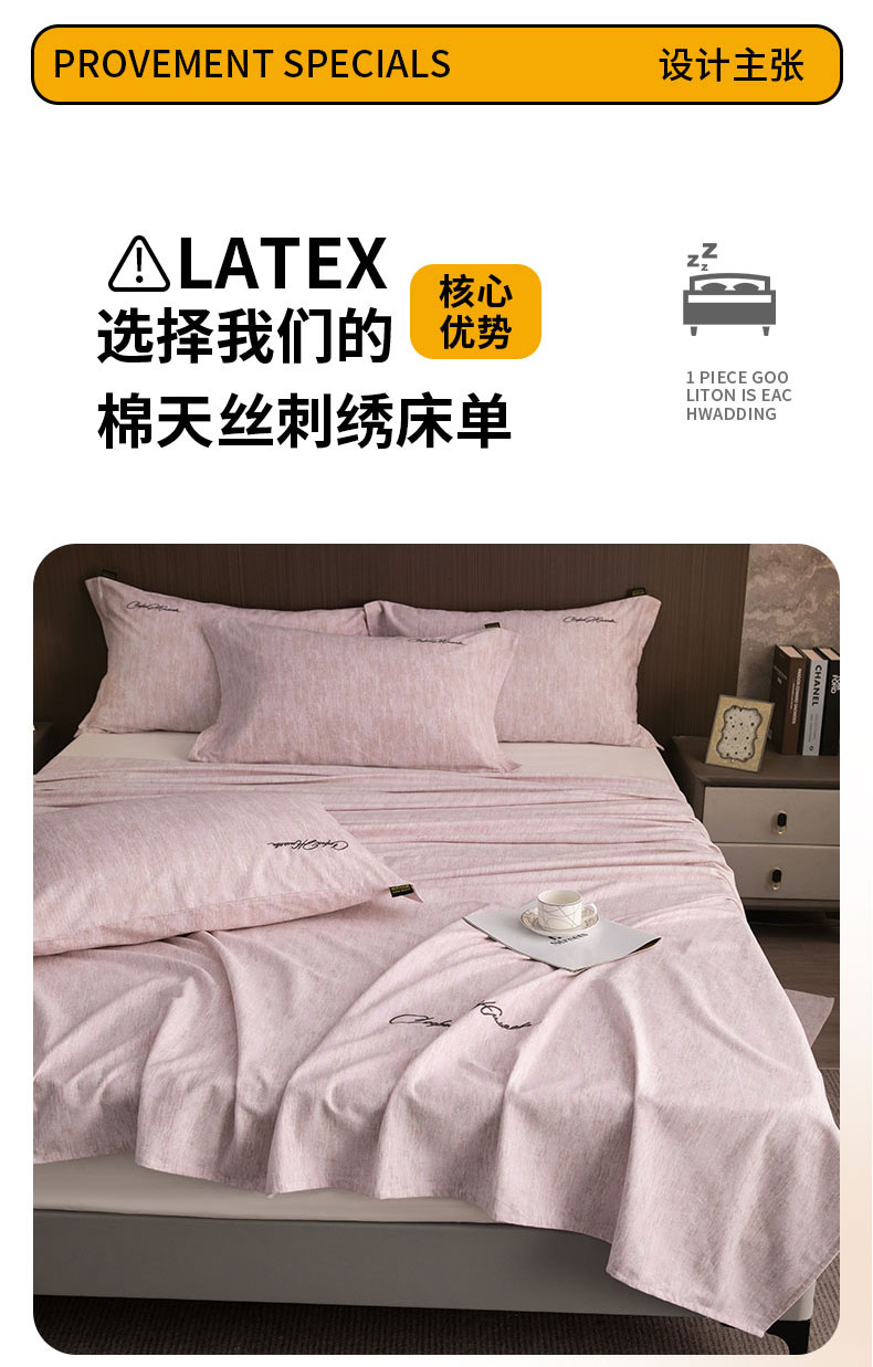 商品名称:春皖家纺 2025新款棉天丝纯色刺绣四件套单品系列-单床单 樱绮丝