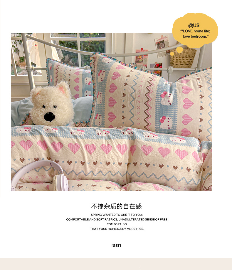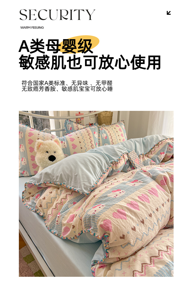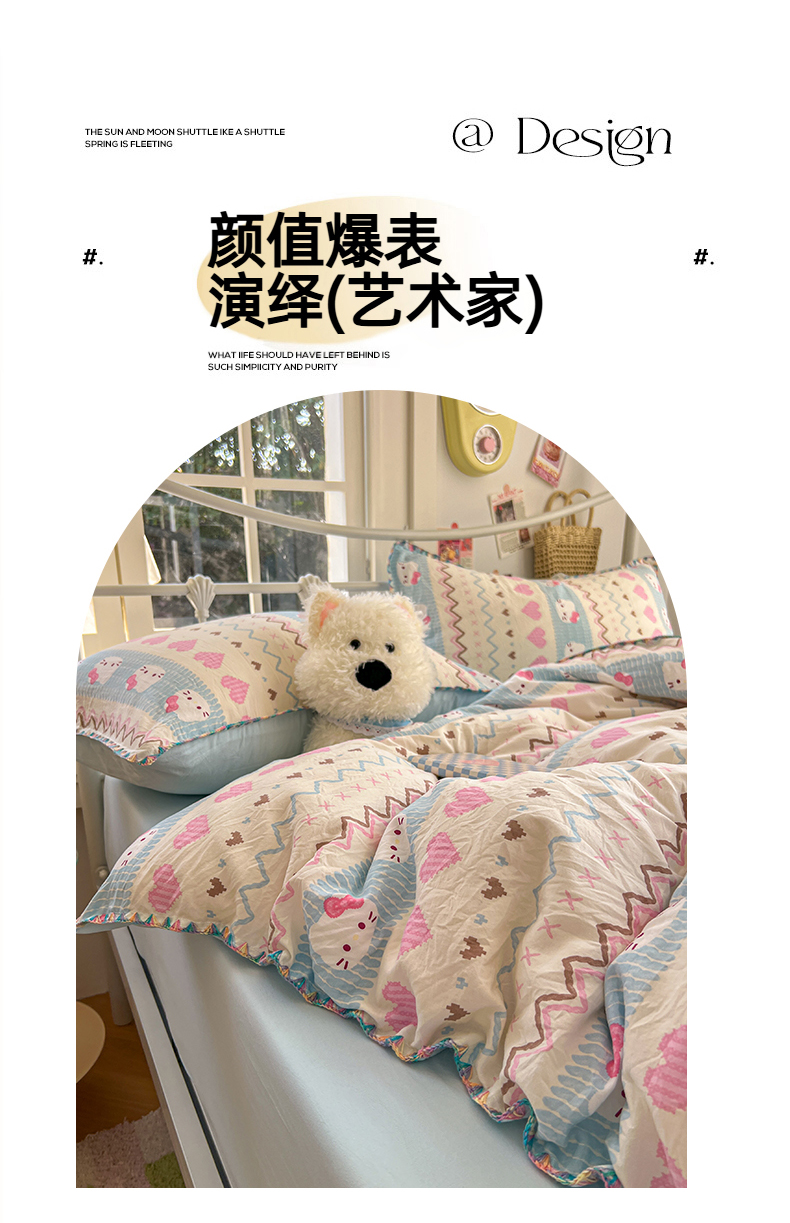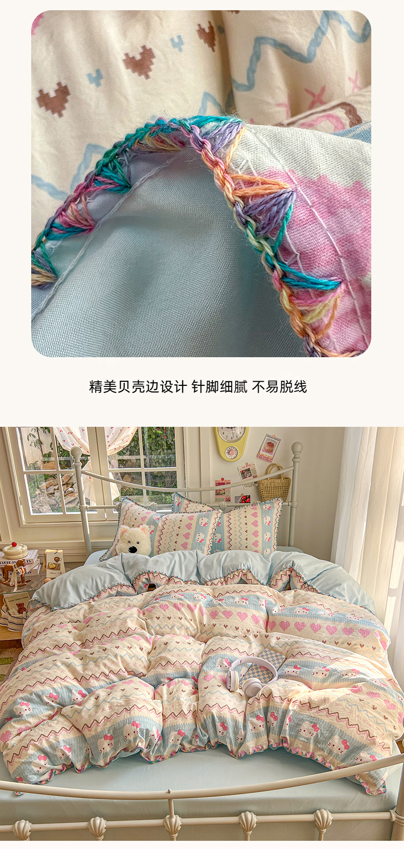 当前位置: 91家纺网 > 商品网购 > 床品套件 > 四件套 > 水洗棉四件套 > 冕悠家纺 2026新款超柔软卡通七彩贝壳边水洗棉四件套 提供买家秀 七彩-猫猫奶蓝