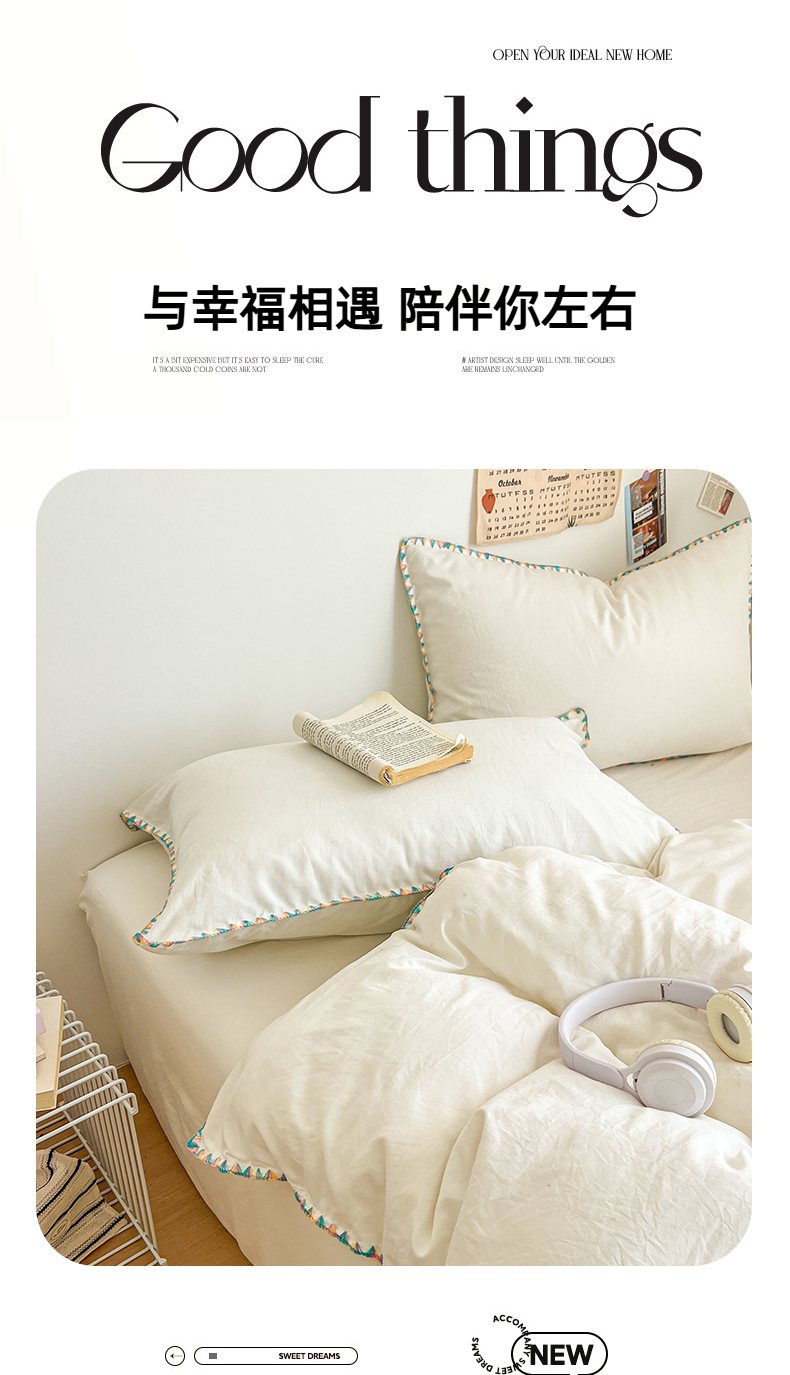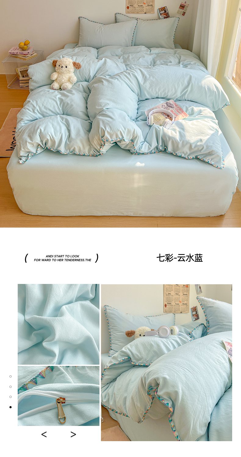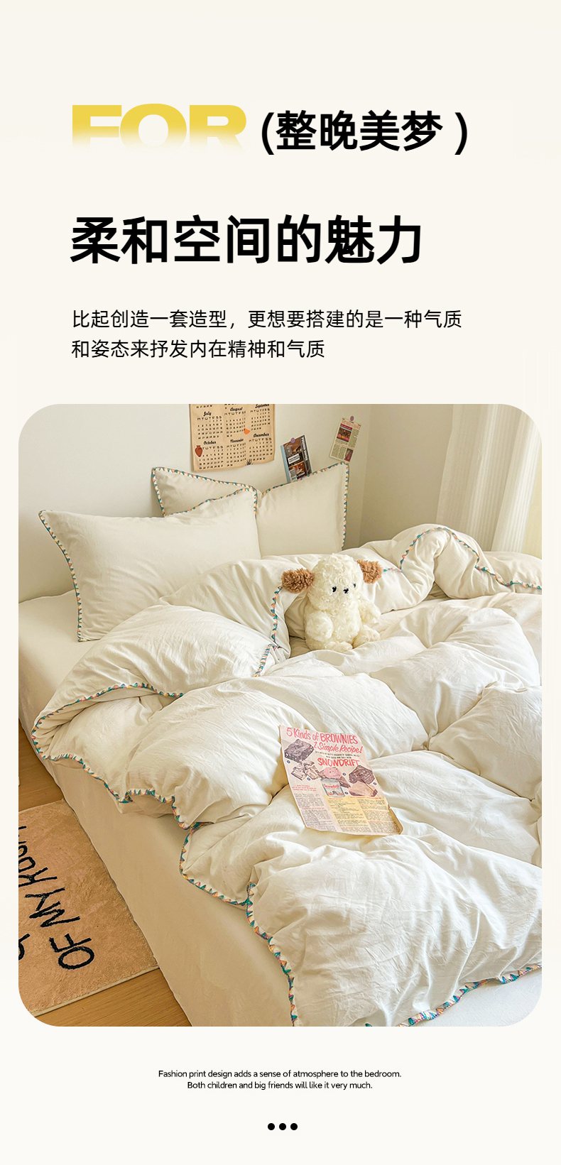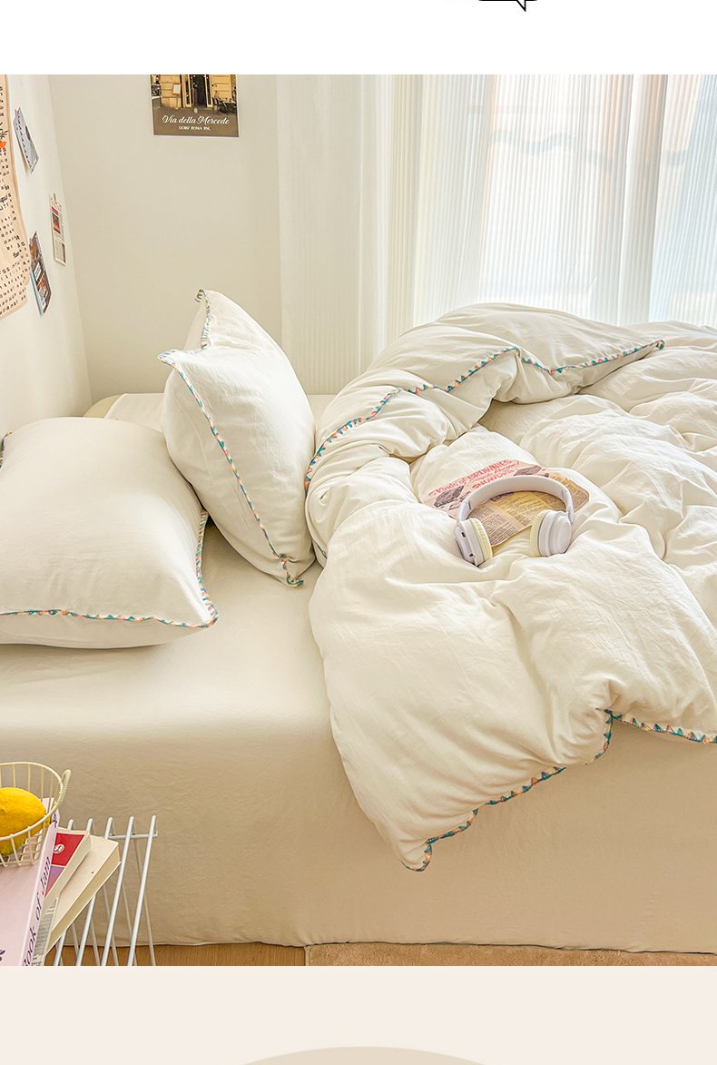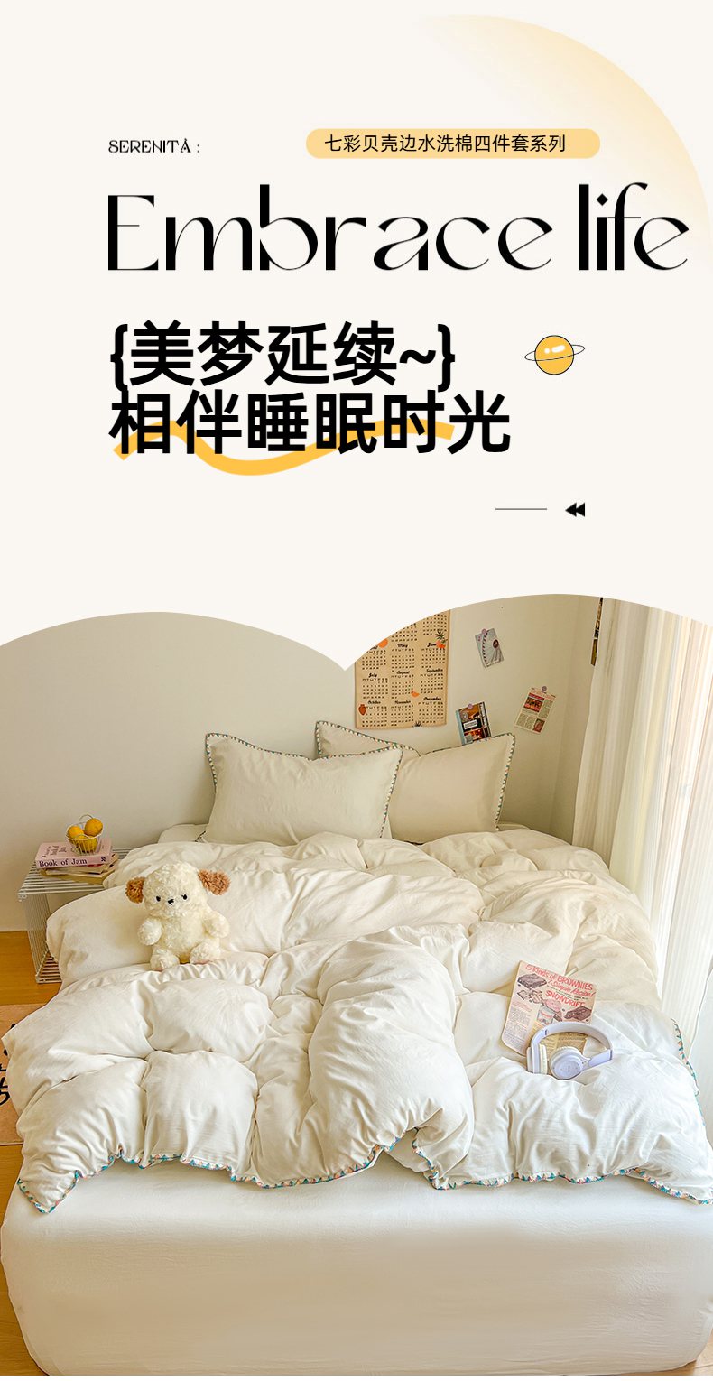 当前位置: 91家纺网 > 商品网购 > 床品套件 > 四件套 > 水洗棉四件套 > 冕悠家纺 2025新款A类七彩贝壳边水洗棉四件套-加微信提供买家秀2 七彩-奶白