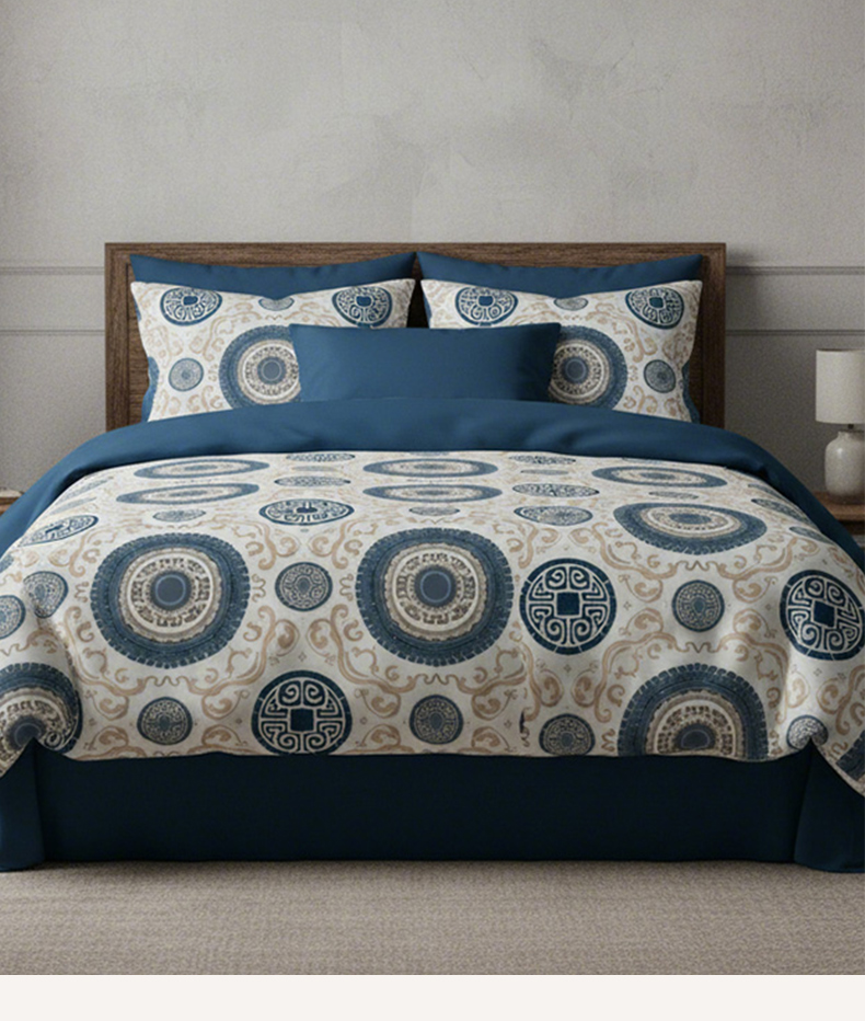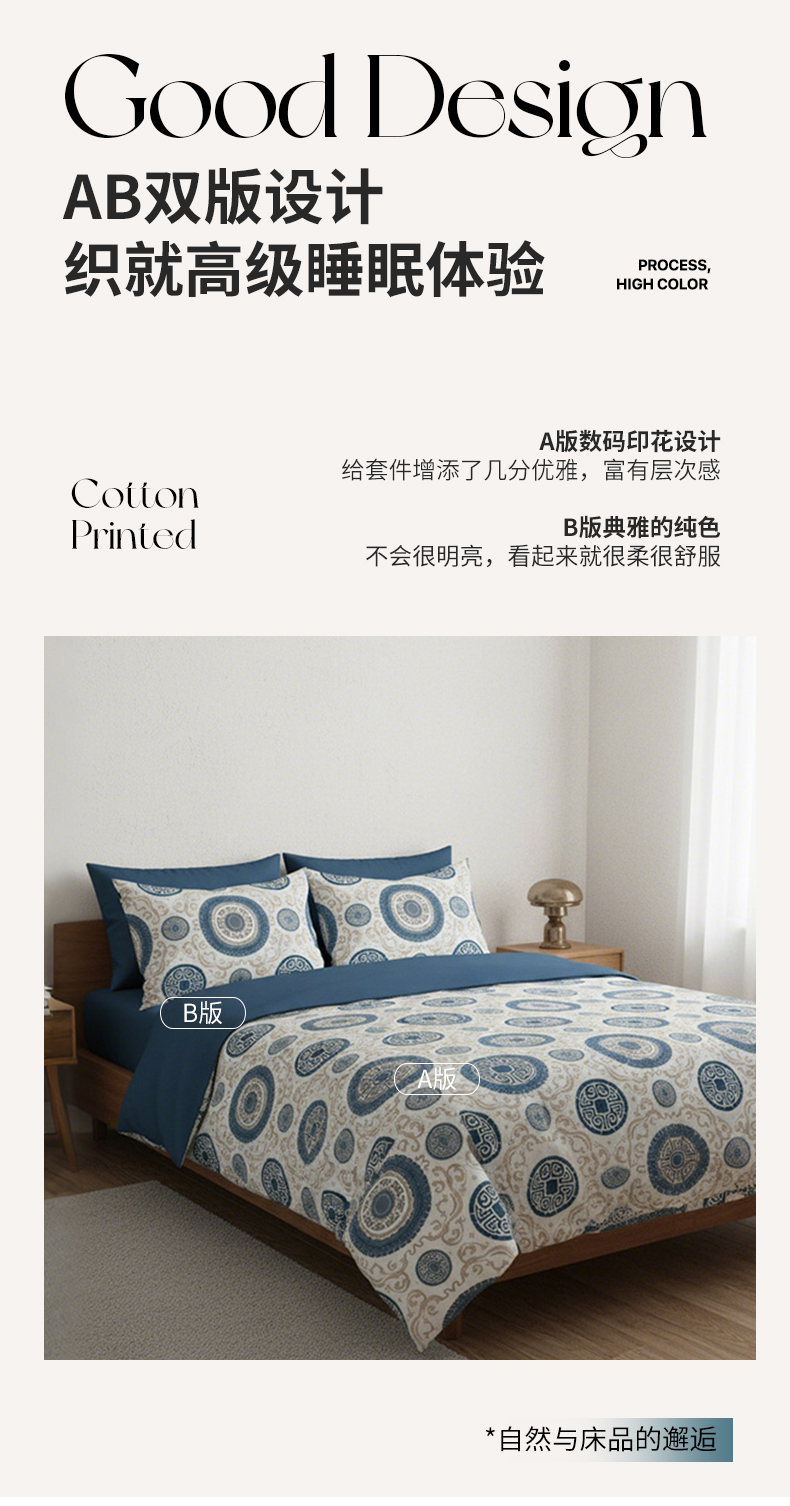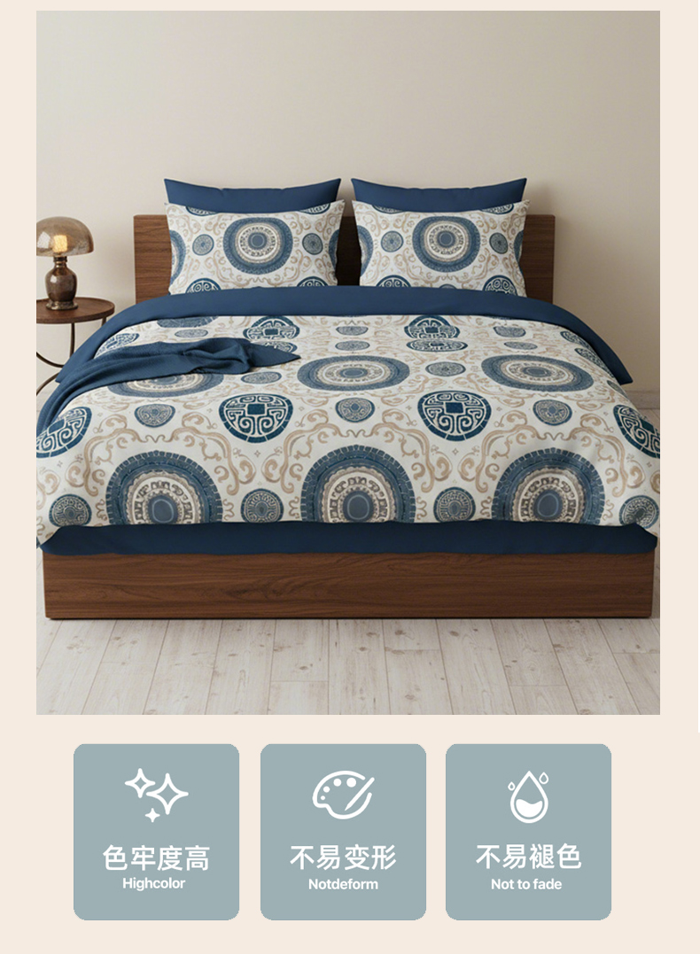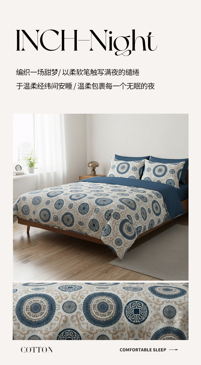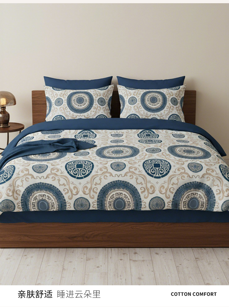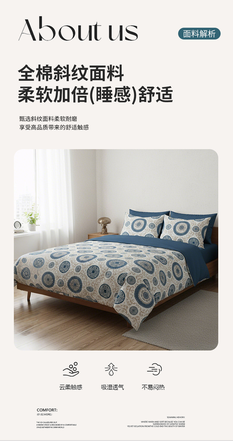 (总)纯色雨家纺 2026新款全棉四件套100纯棉艺术套件国潮风高端斜纹数码印花四季床品,素影暖阳