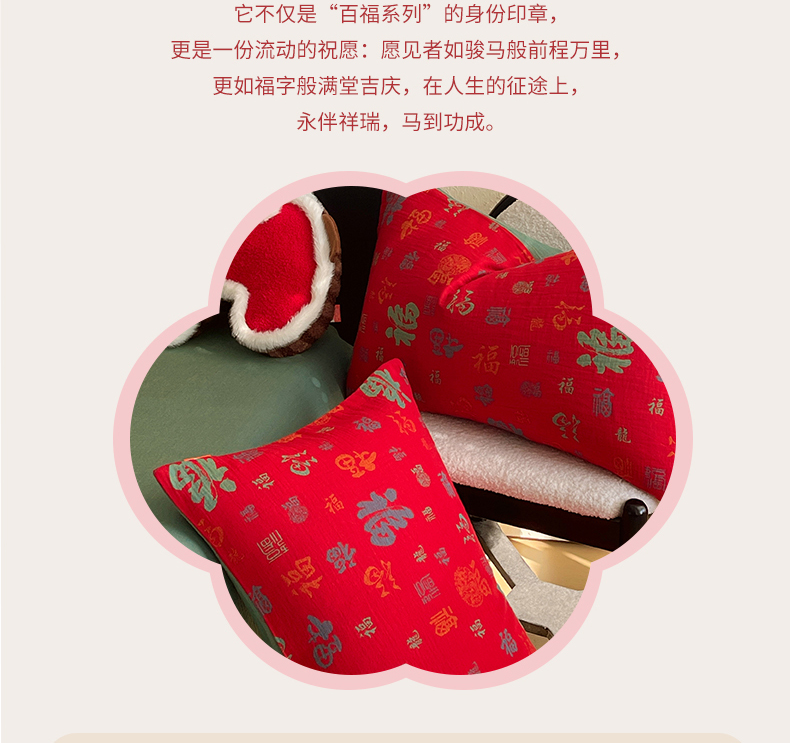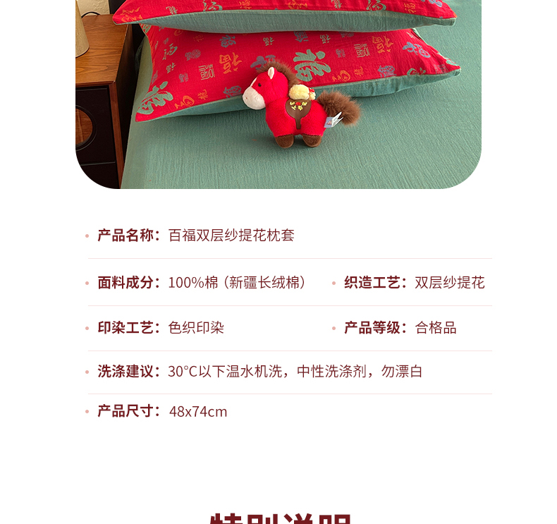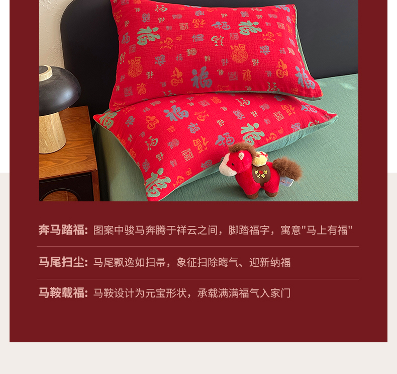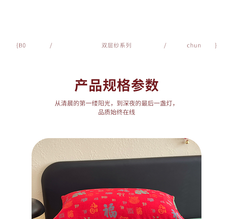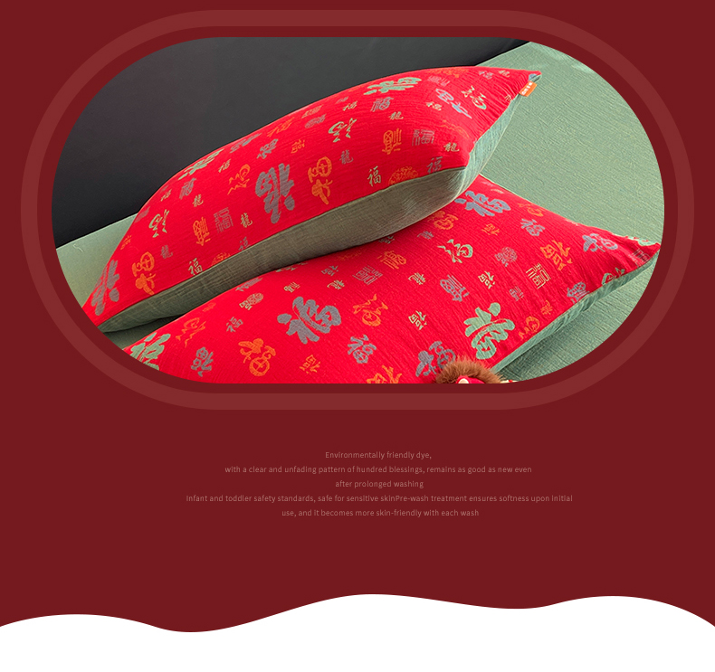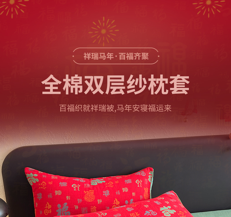 商品名称:春皖家纺 2026新款全棉色织双层纱提花百福系列拉链款-单枕套 红百福