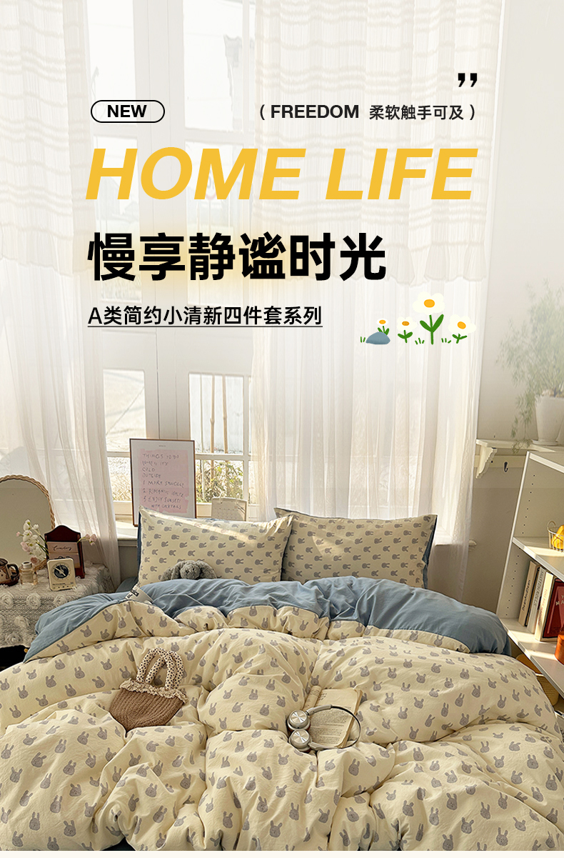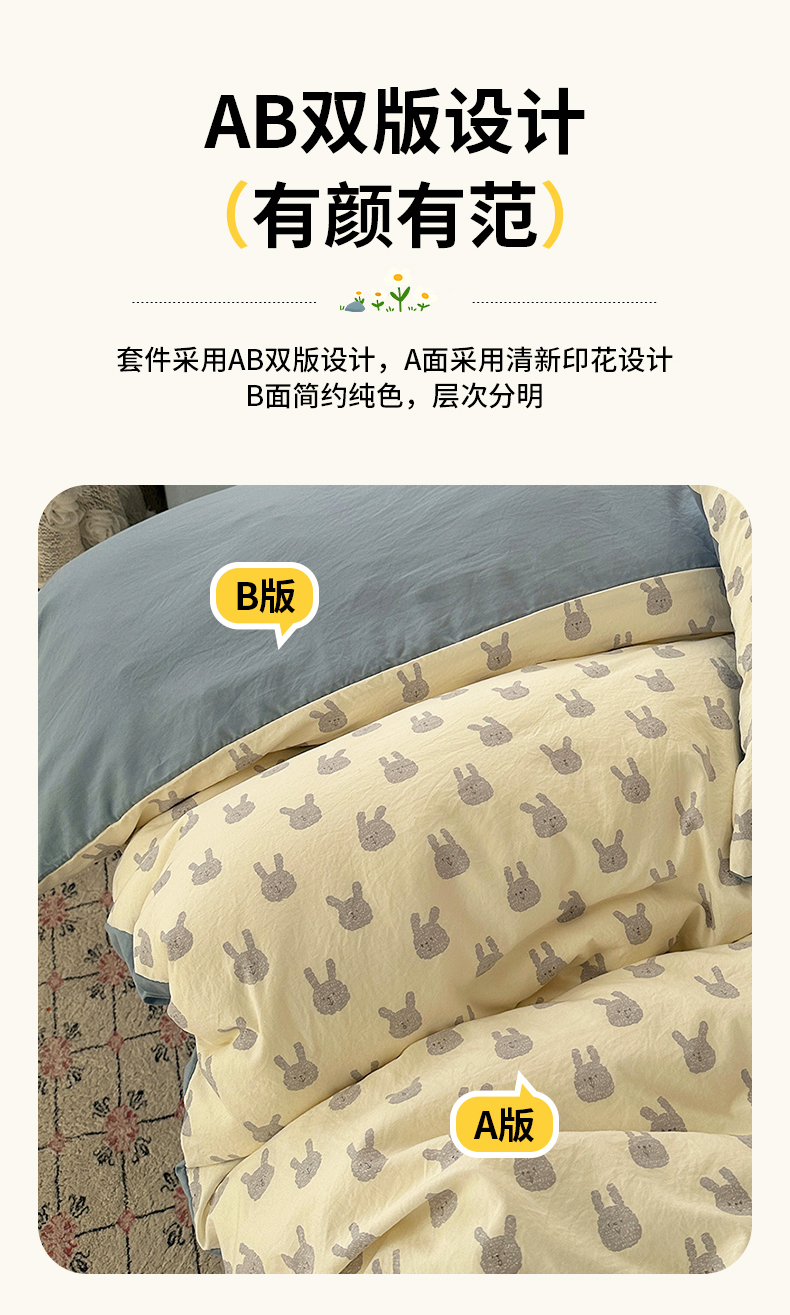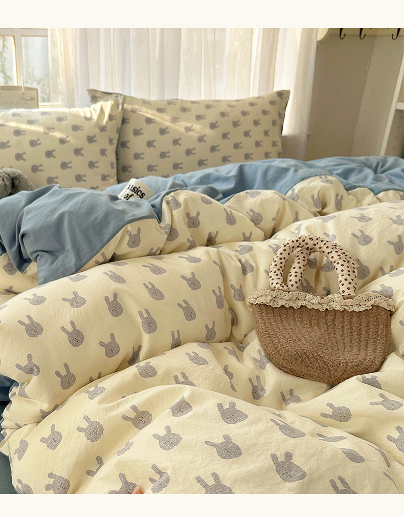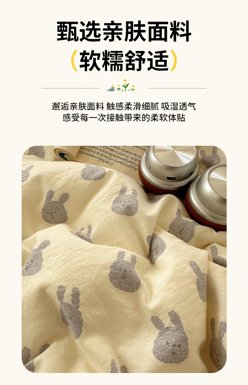 当前位置: 91家纺网 > 商品网购 > 床品套件 > 四件套 > 水洗棉四件套 > 初夏家纺 2026 古法仿棉水洗四件套A类被罩床单三件套床上用品卡通可爱【提供买家秀】 火爆兔