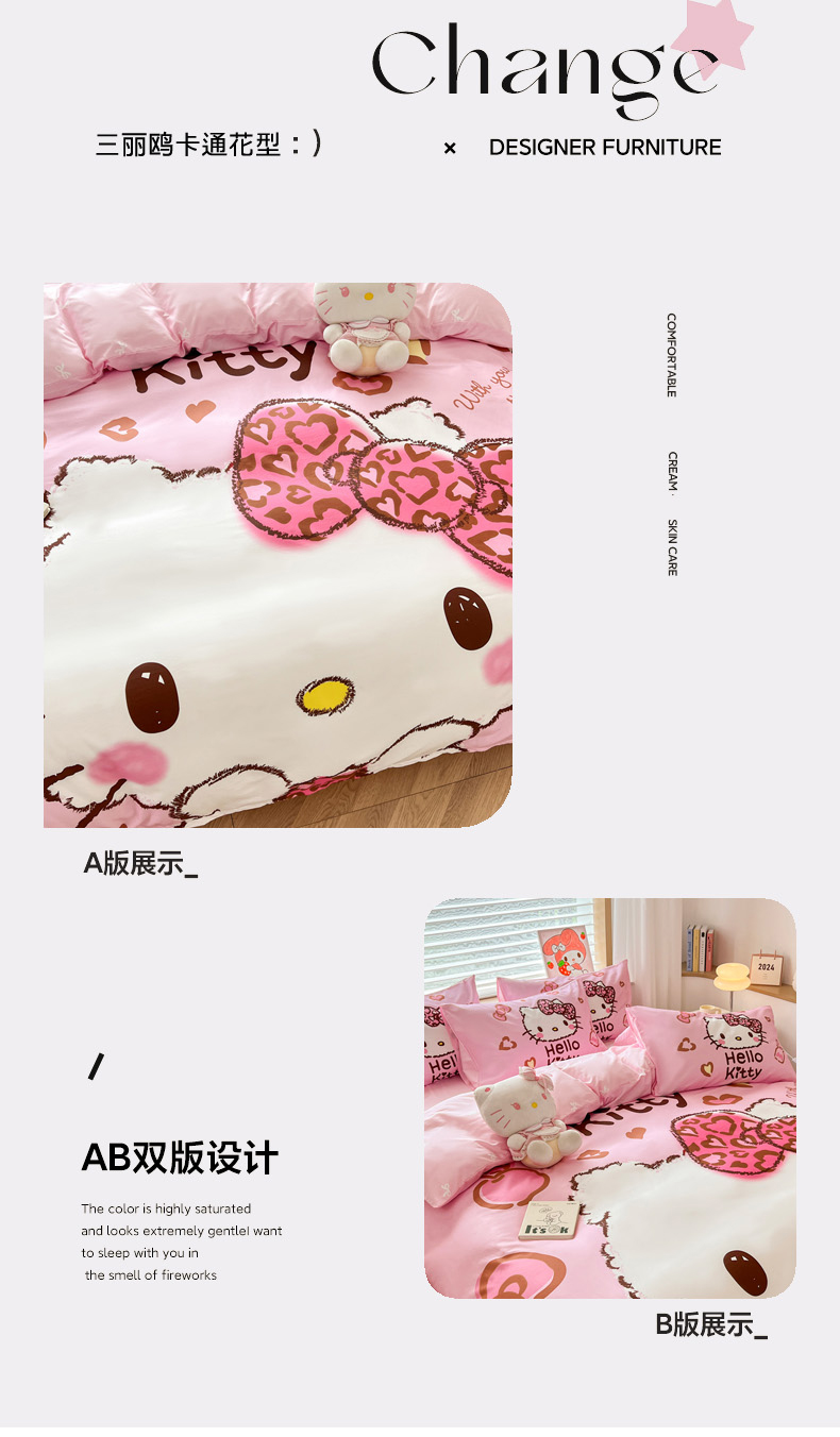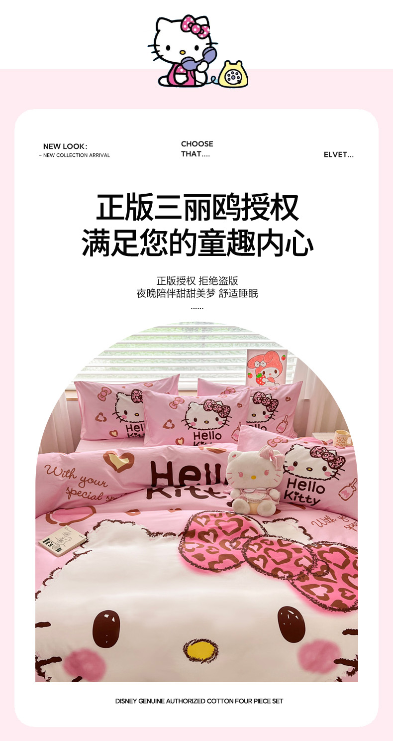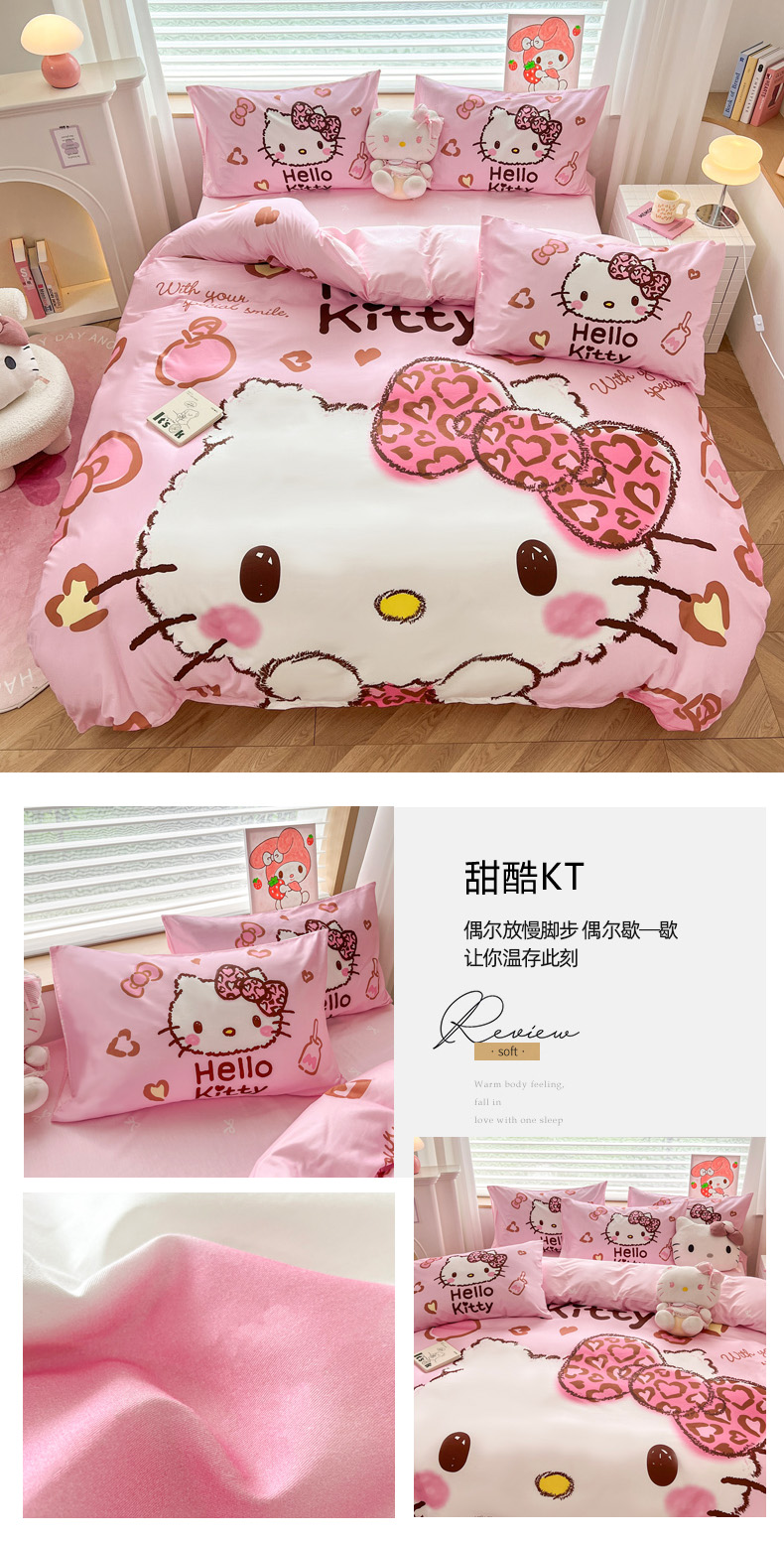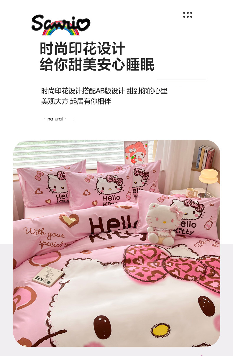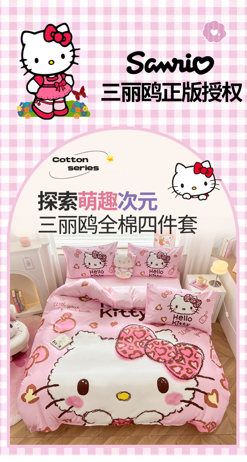 当前位置: 91家纺网 > 商品网购 > 床品套件 > 四件套 > 全棉普通四件套 > 暮思家居 2026新款正版授权三丽鸥大版全棉纯棉数码印花纯棉四件套系列-第一批 大版-甜酷KT
