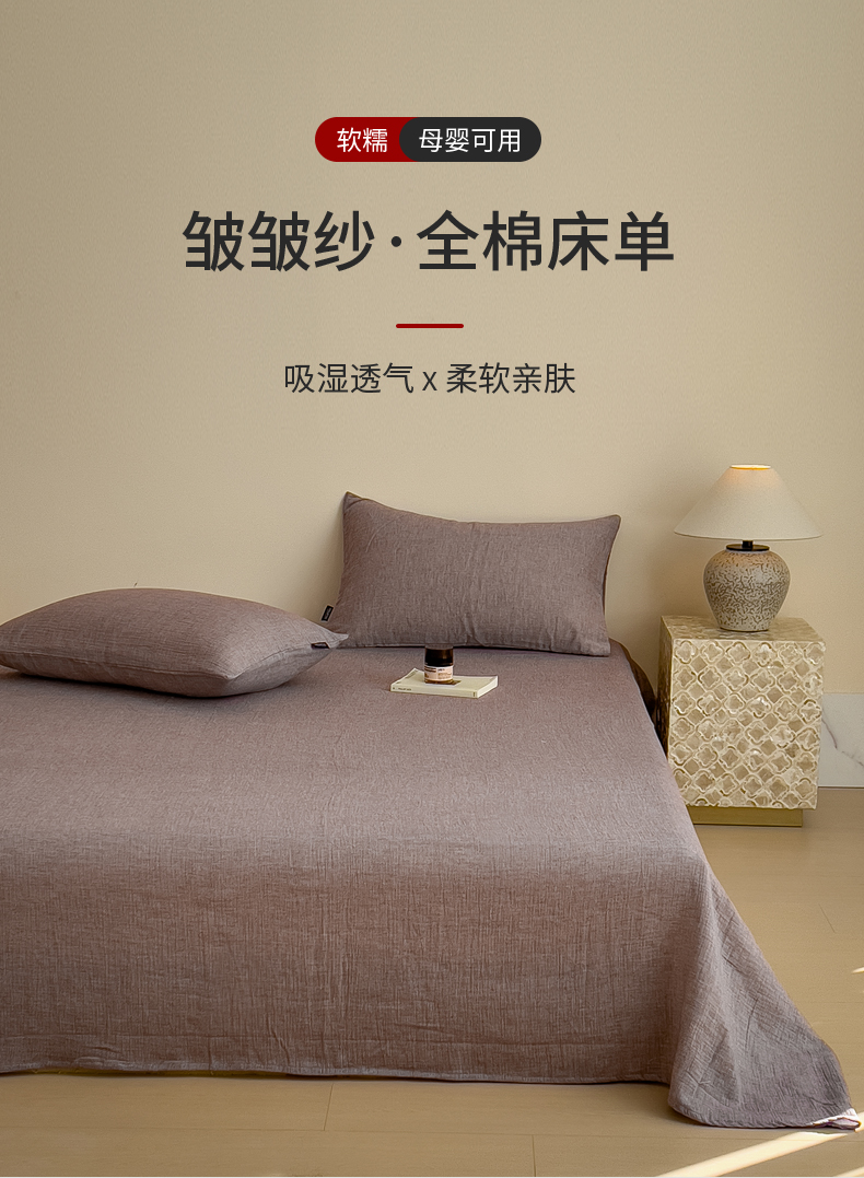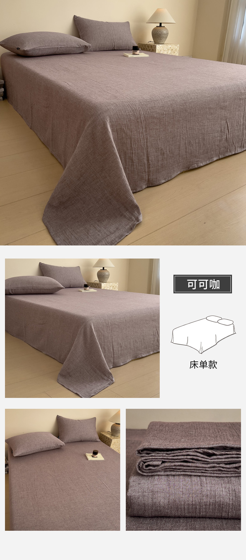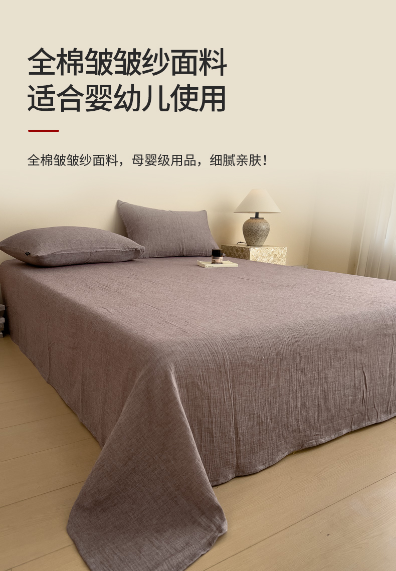 (总)席世家 2026新款纯色皱皱纱床单,芭乐粉,可可咖,梦幻紫,米白,奶茶棕,泡沫灰,森林绿,烟灰兰