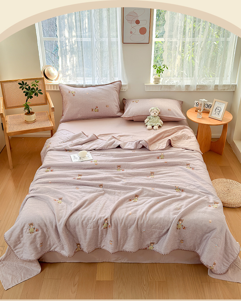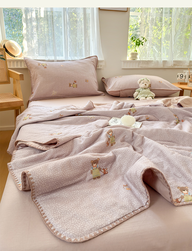 雯雨家纺 2026新款全棉双层纱新疆棉花夏被空调被被子被芯 朱迪熊-紫