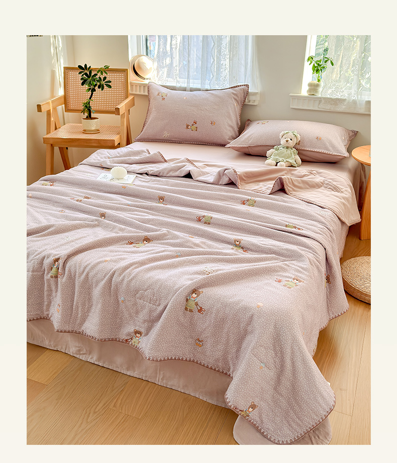 • 91家纺网 家纺一手货源 找家纺 雯雨家纺 2026新款全棉双层纱新疆棉花夏被空调被被子被芯 朱迪熊-紫