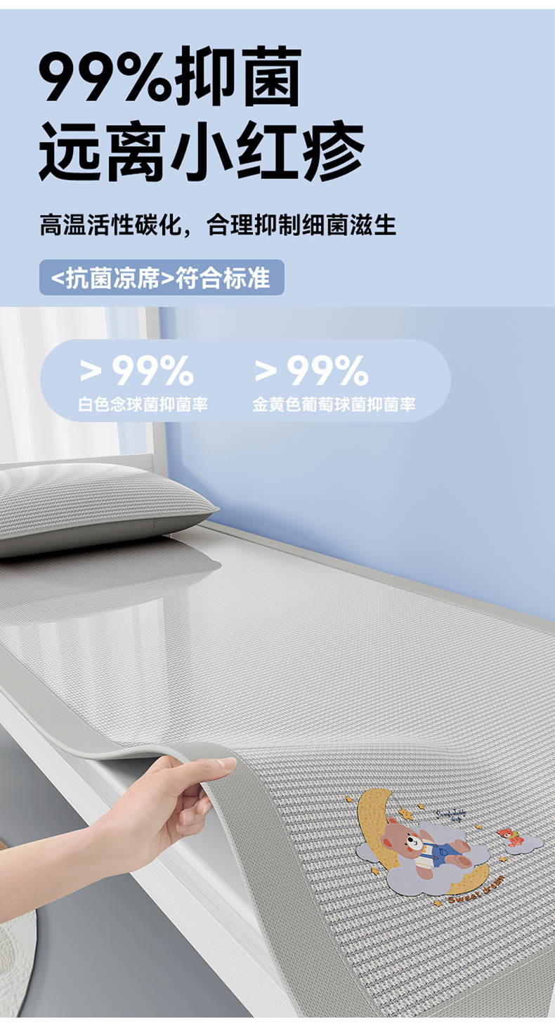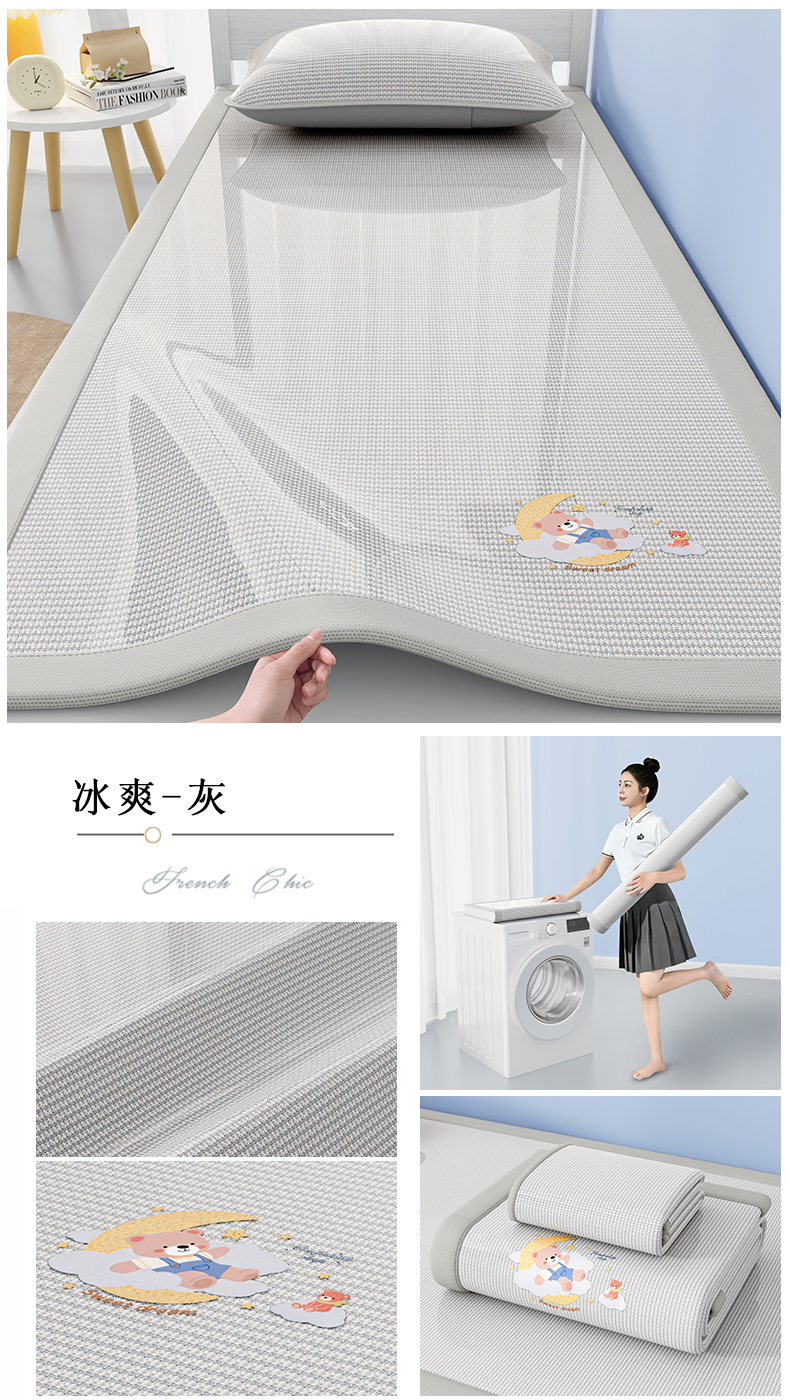 当前位置: 91家纺网 > 商品网购 > 床上用品 > 凉席 > 凉席套件 > 家品罗兰 2026新款夏季A类碳光凉席三明治透气网冰丝凉席家用双人冰丝席床单可机洗单人学生宿舍上下铺夏天空调软席三件套 冰爽-灰
