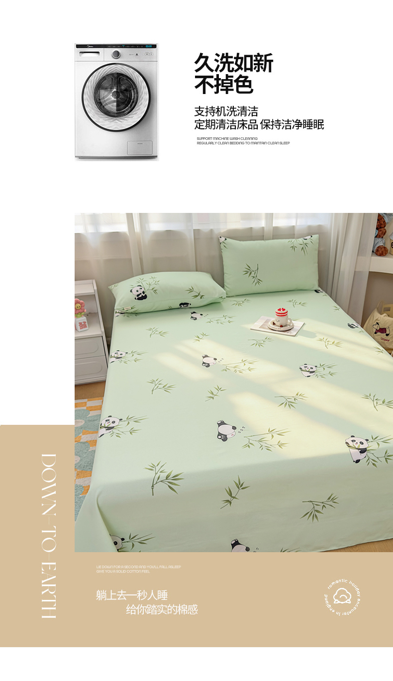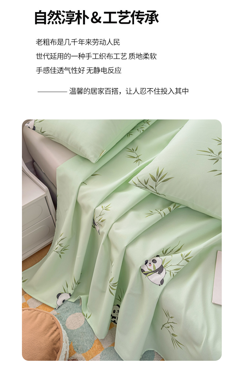 • 91家纺网 家纺一手货源 找家纺 爱彼家纺 2026夏季新款亲肤原棉老粗布透气印花床单单件热门热门床单款新升级-细沙老粗布 竹小熊
