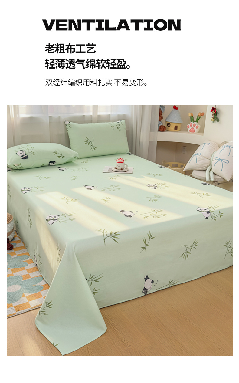爱彼家纺 2026夏季新款亲肤原棉老粗布透气印花床单单件热门热门床单款新升级-细沙老粗布 竹小熊