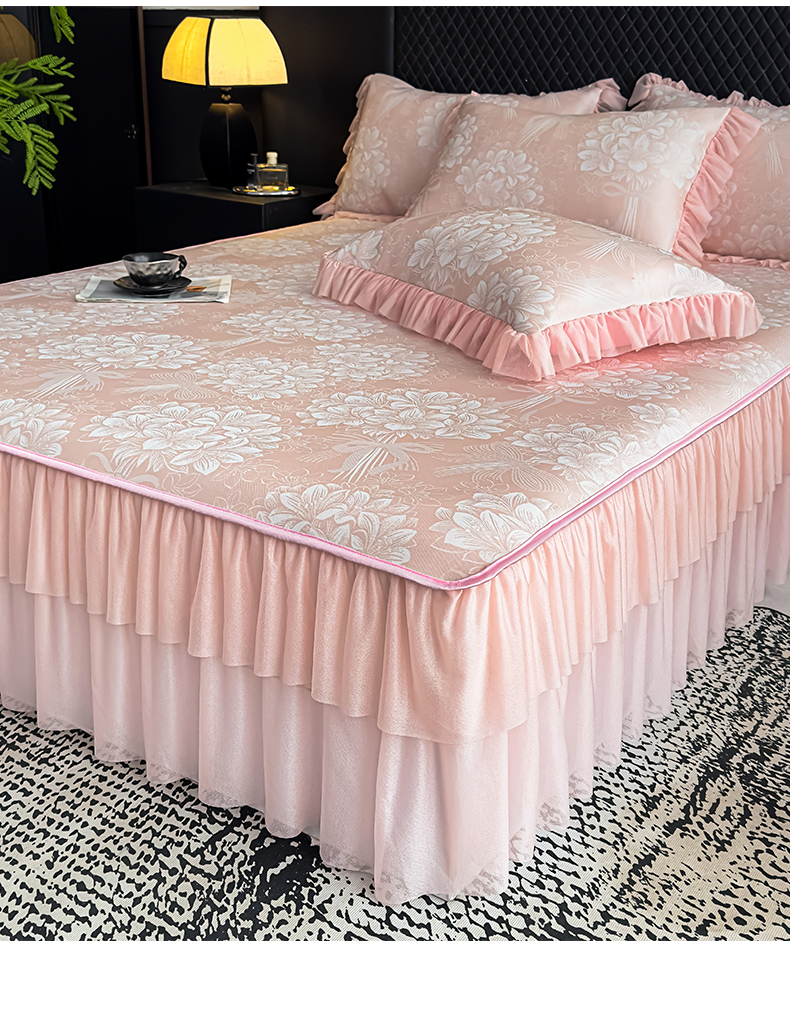 • 91家纺网 家纺一手货源 找家纺 (总)家之硕家纺 2026新款精仿棉夹棉床裙三件套,彩韵,春芽,多丽粉,花恋,漫漫花开,倾城繁花,甜蜜花园,遇见浪漫