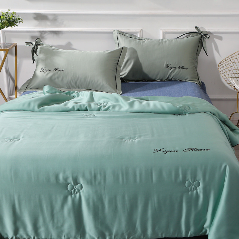 娇逸家纺 2019新款60天丝蝴蝶结夏被-爱琴海湖绿