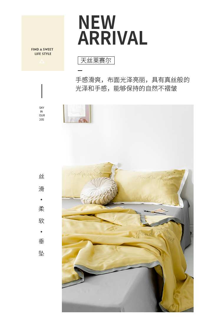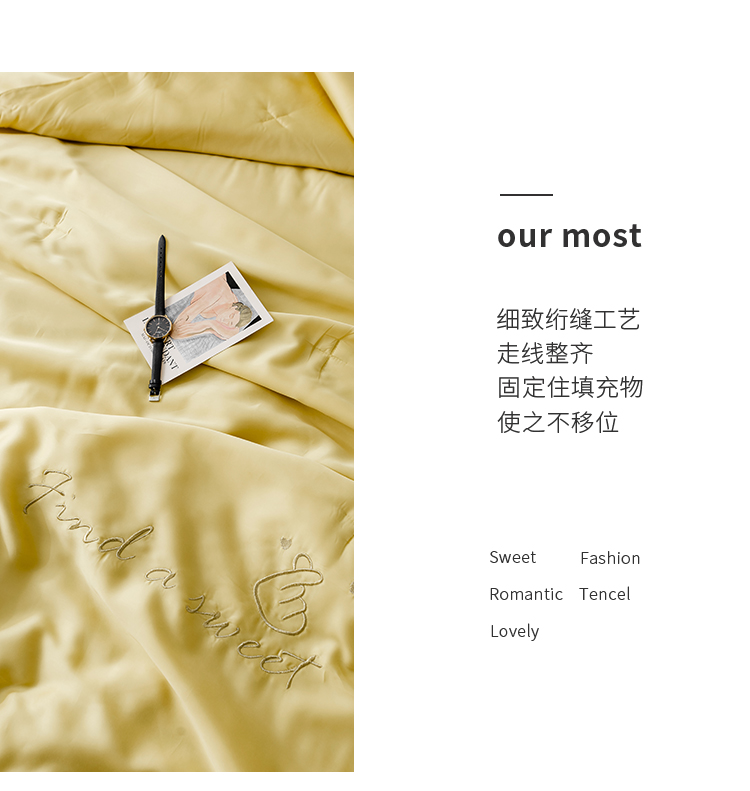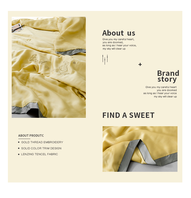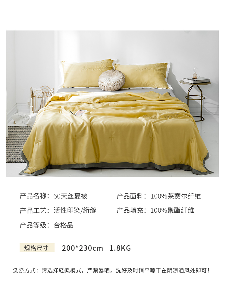 商品名称:润缦家纺 2019新款60天丝夏被比心系列 日光黄