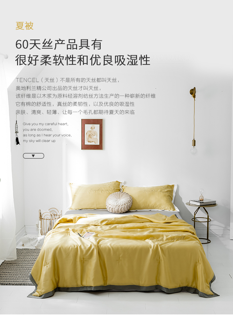 润缦家纺 2019新款60天丝夏被比心系列 日光黄