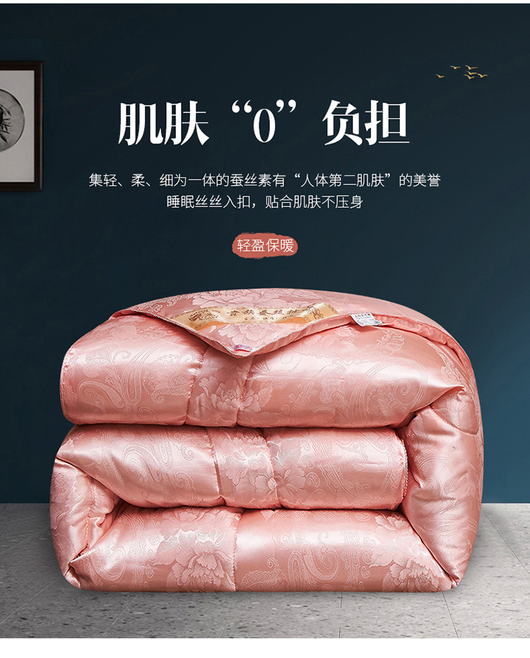 2025新款全棉缎条贡缎提花被子被芯夏凉被春秋被冬被二合一子母被 粉色,粉色