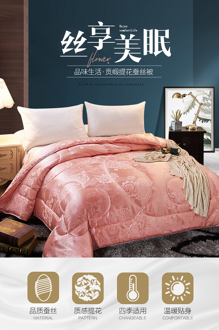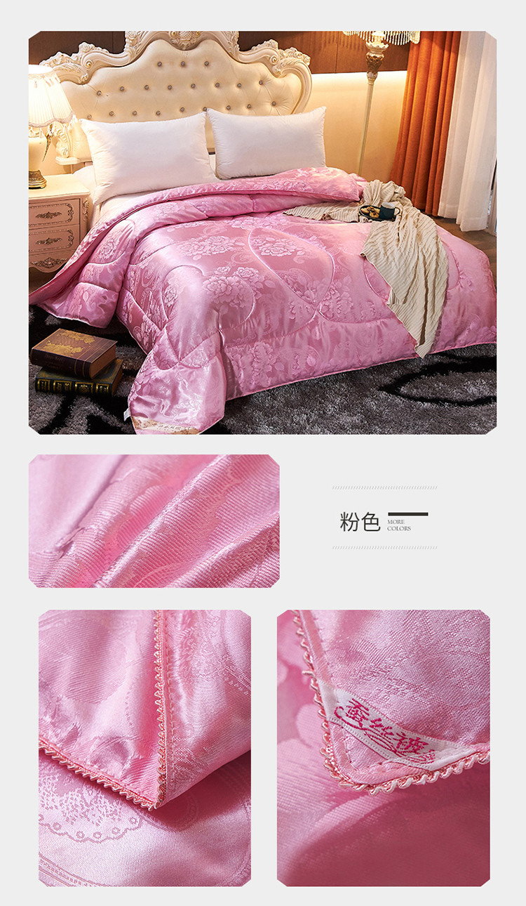 (总)鑫发 新款蜘蛛花被子贡缎提花被子夏被春秋冬被,白色,粉色,黄色,玉色,大红
