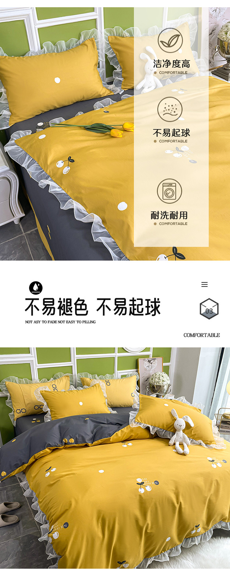 (总)品家居 2025新款AB版高克重兔绒牛奶绒四件套-花絮,花絮-粉色,花絮-黄色