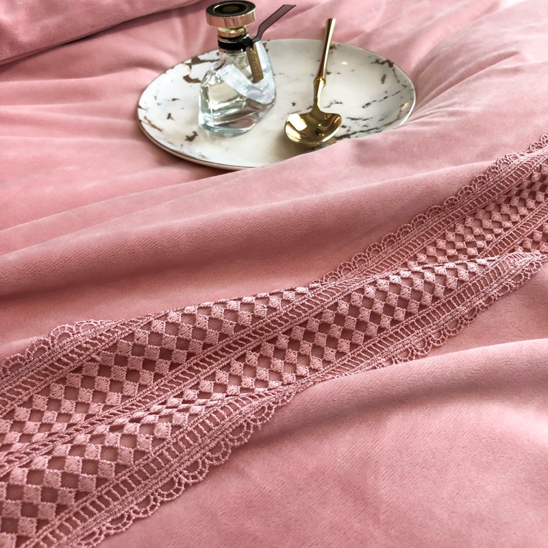 商品名称:榻尚 2021新款柔肤绒花边款四件套遇见系列 粉