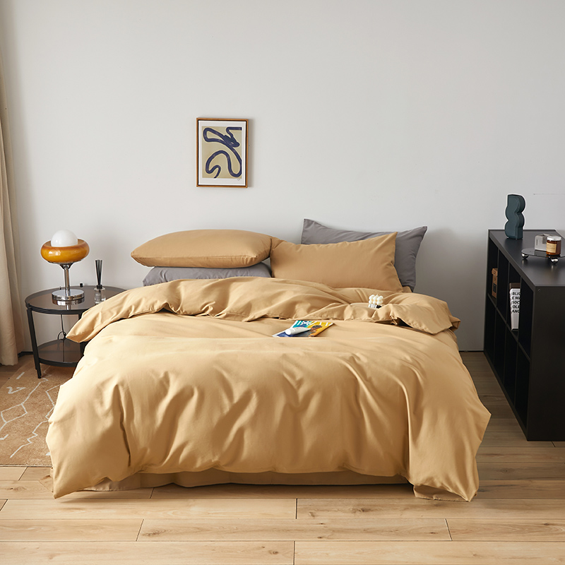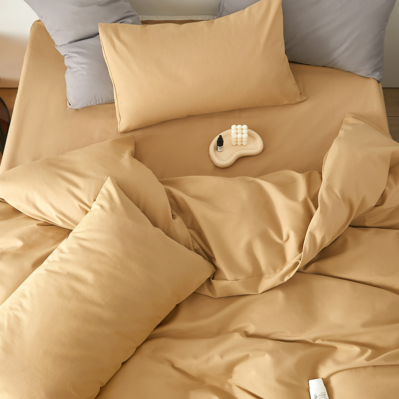(总)寝柔家纺 2025新款60S纯色长绒棉磨毛素色四件套床单床笠款,杏驼,魅力紫,奶霜黄,暖橙,少女粉,水波兰,碳木灰,午夜蓝