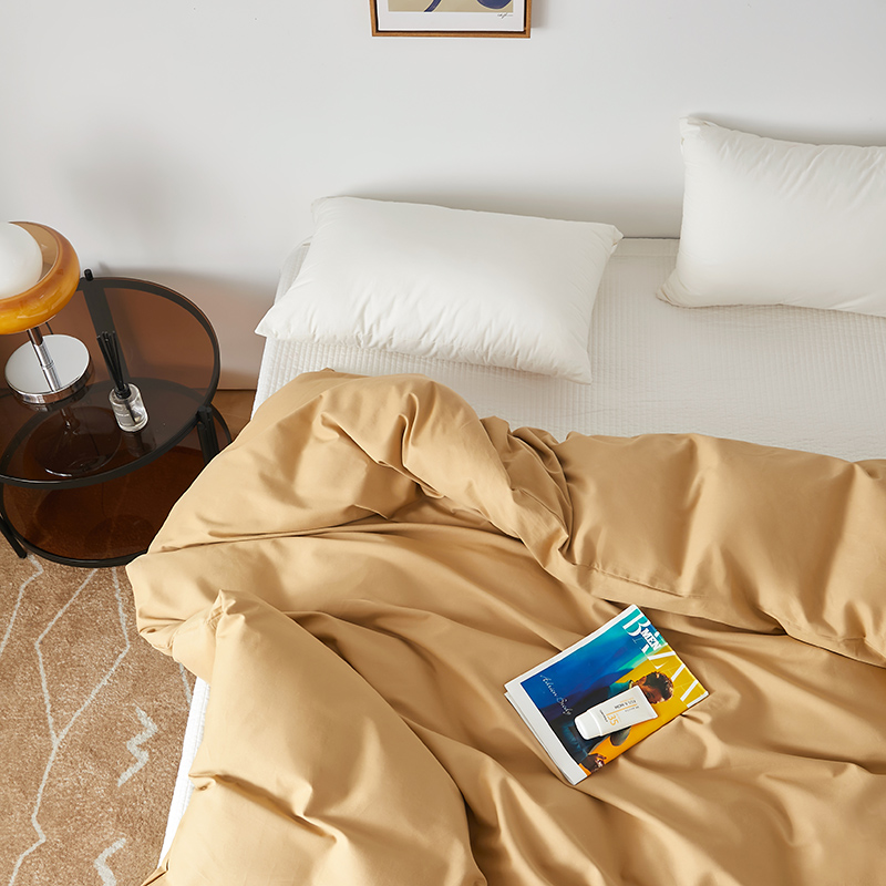 (总)寝柔家纺 2025新款60S全棉磨毛纯色纯棉长绒棉被套单双人床,魅力紫,奶霜黄,暖橙,少女粉,水波兰,碳木灰,午夜蓝,杏驼