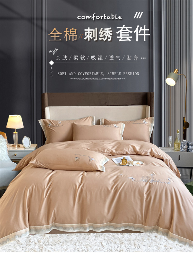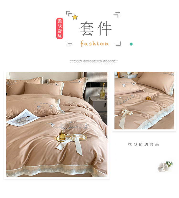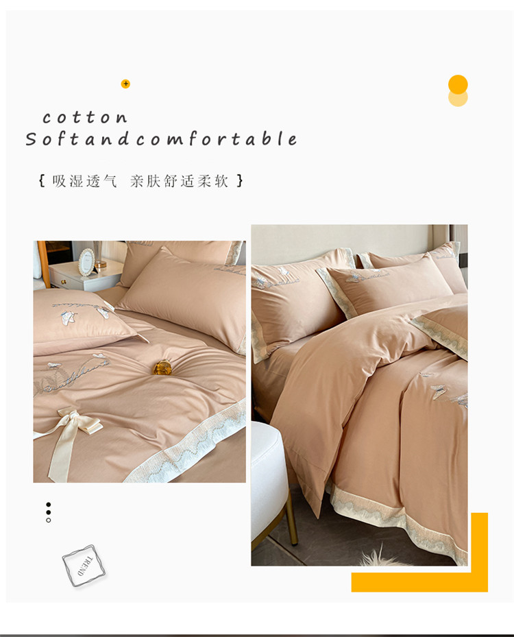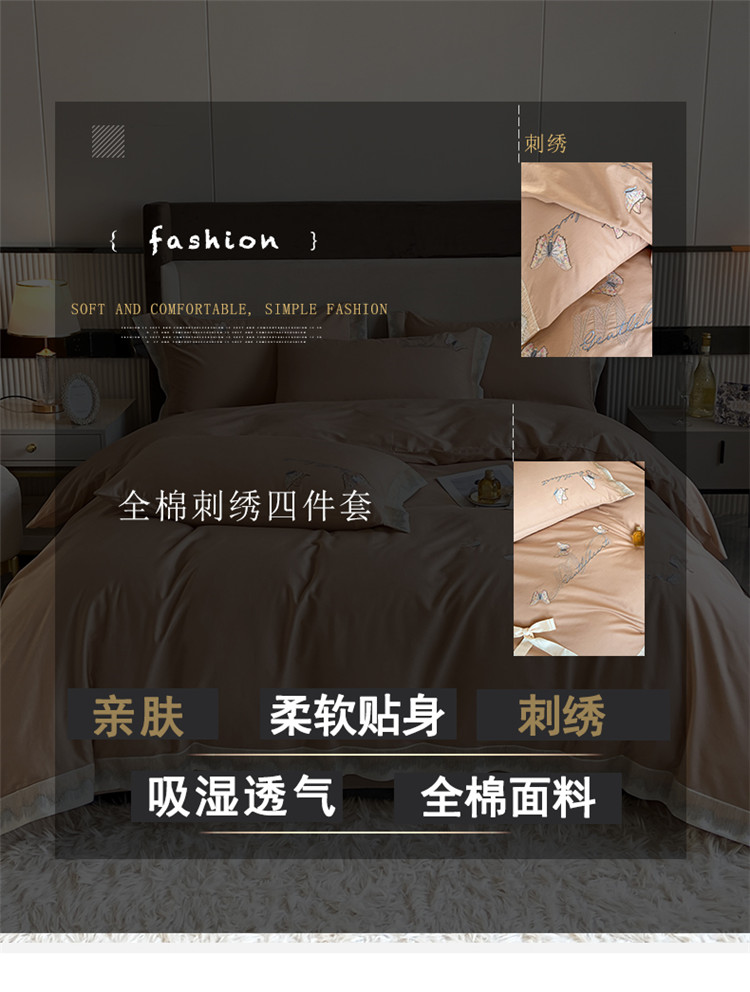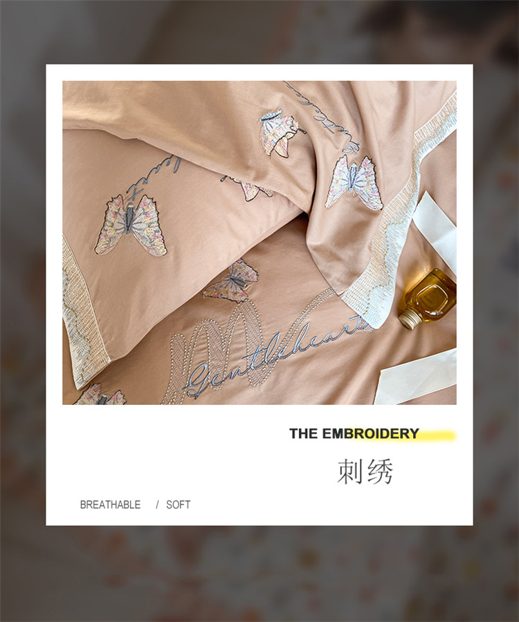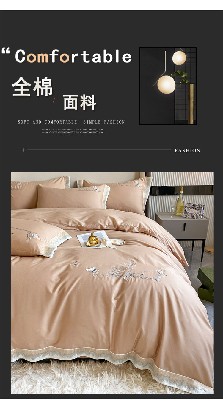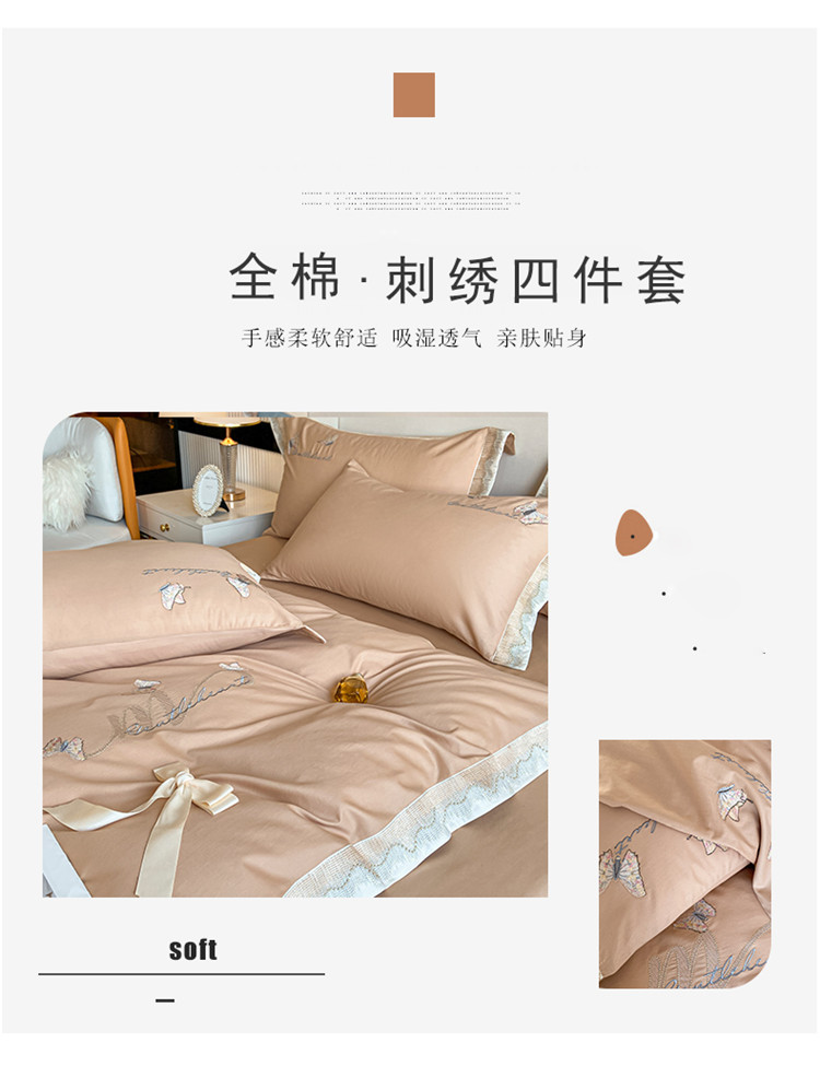 商品名称:安妮家居 2022新款全棉刺绣四件套-碟之恋 香槟