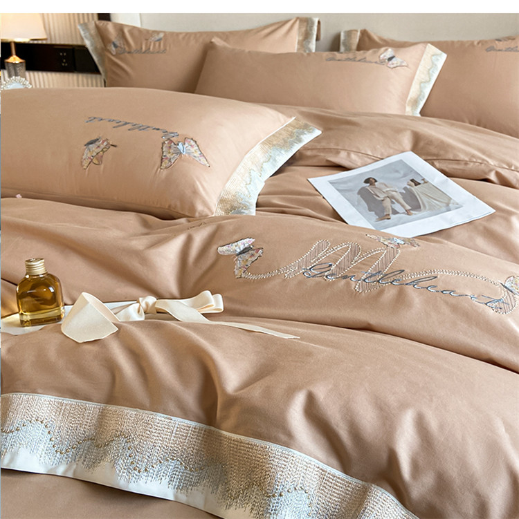 安妮家居 2022新款全棉刺绣四件套-碟之恋 香槟
