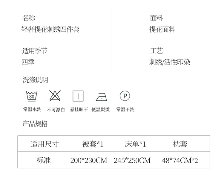 商品名称:(总)涵宸 2022新款轻奢提花刺绣四件套流沙