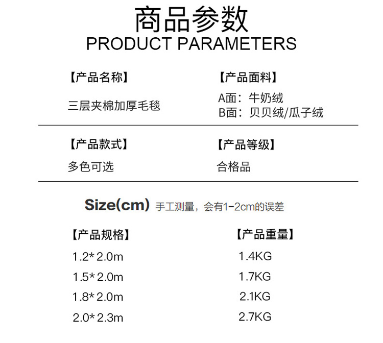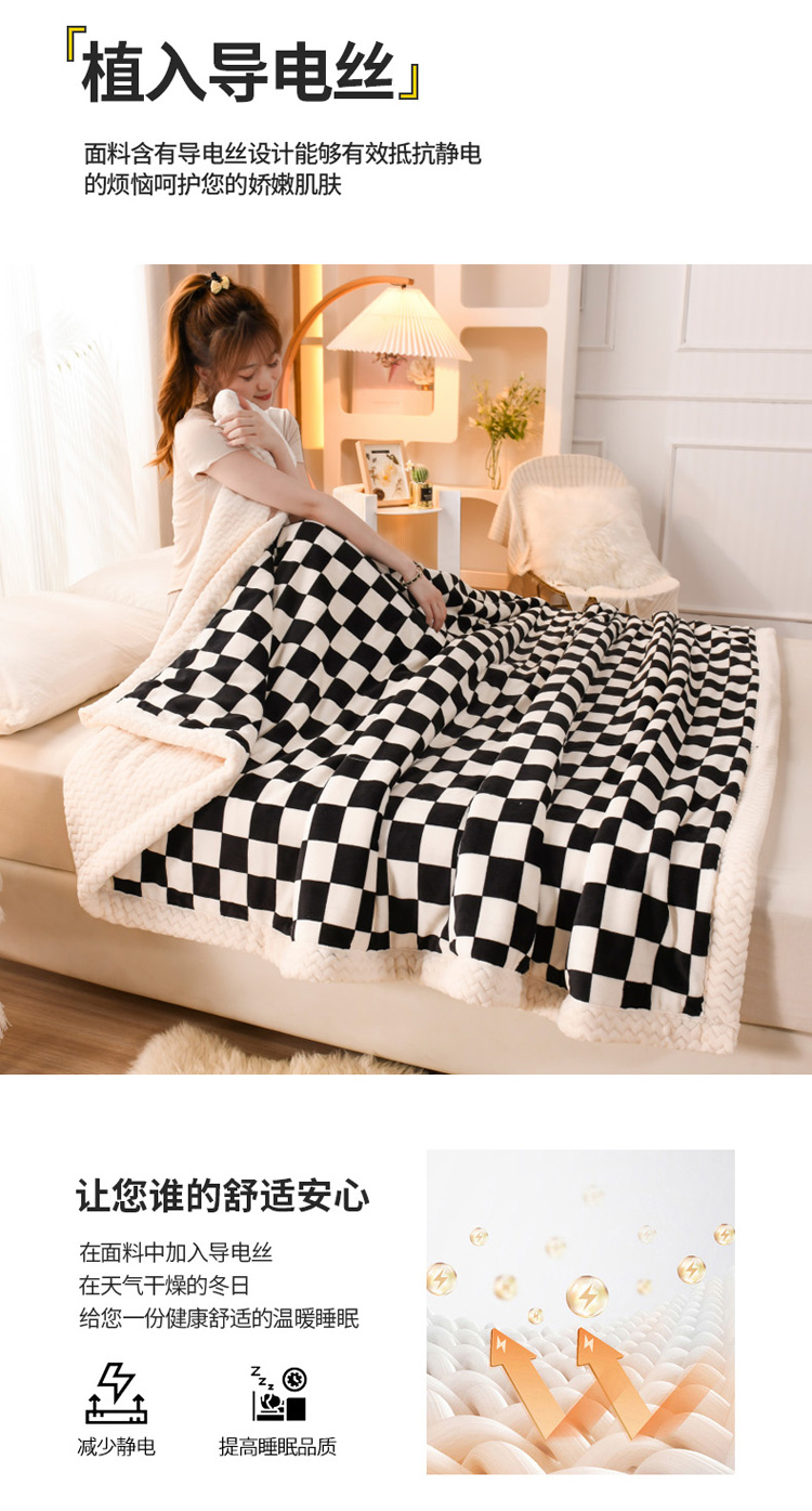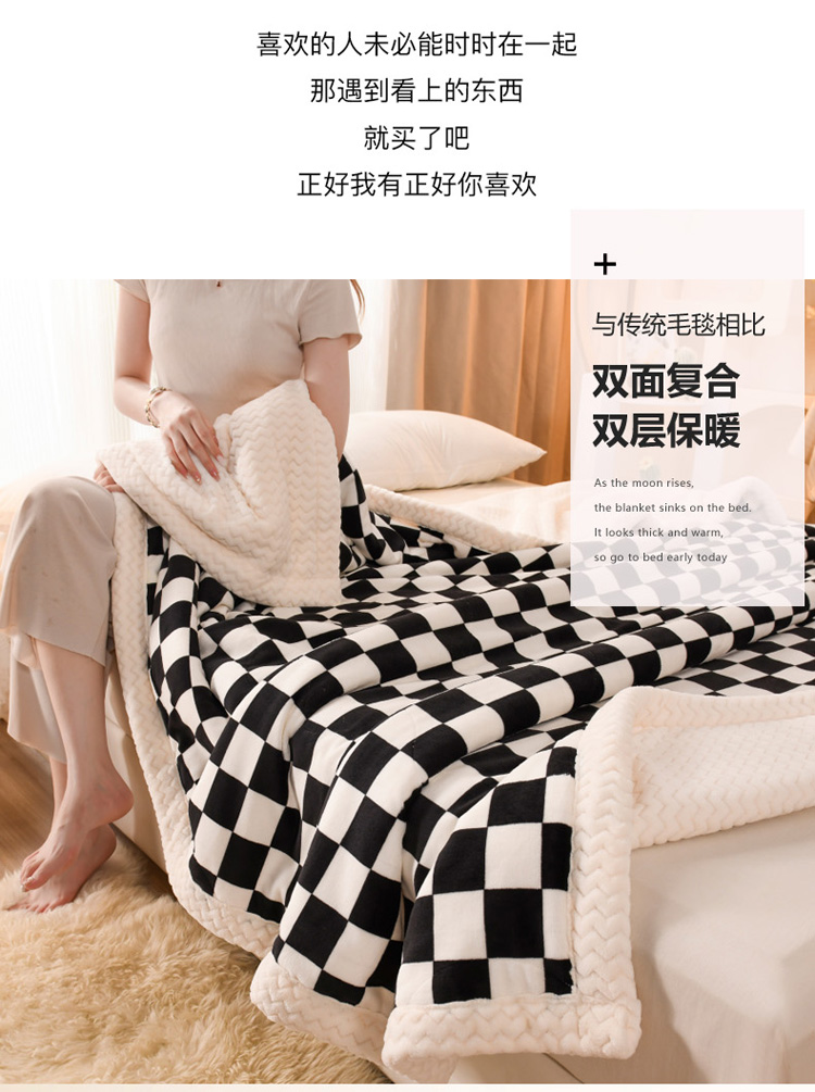 商品名称:印季 2024新款三层夹棉印花牛奶绒毛毯 棋盘格-黑-贝贝绒