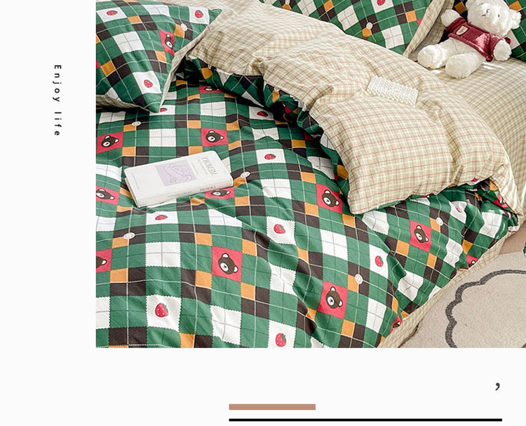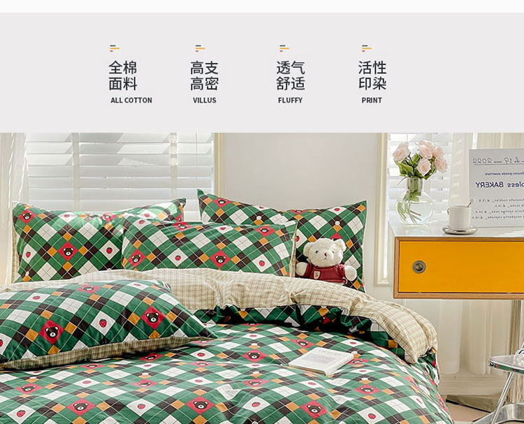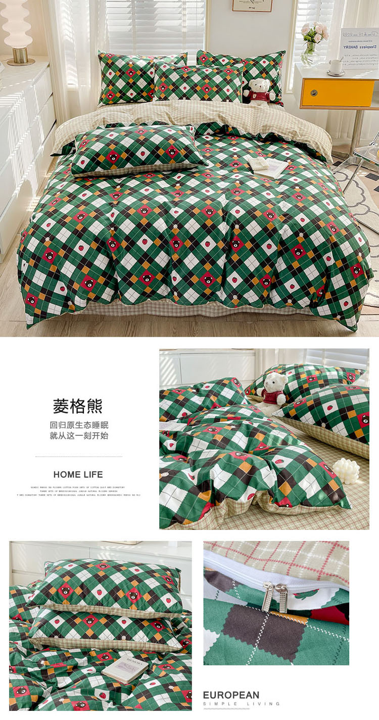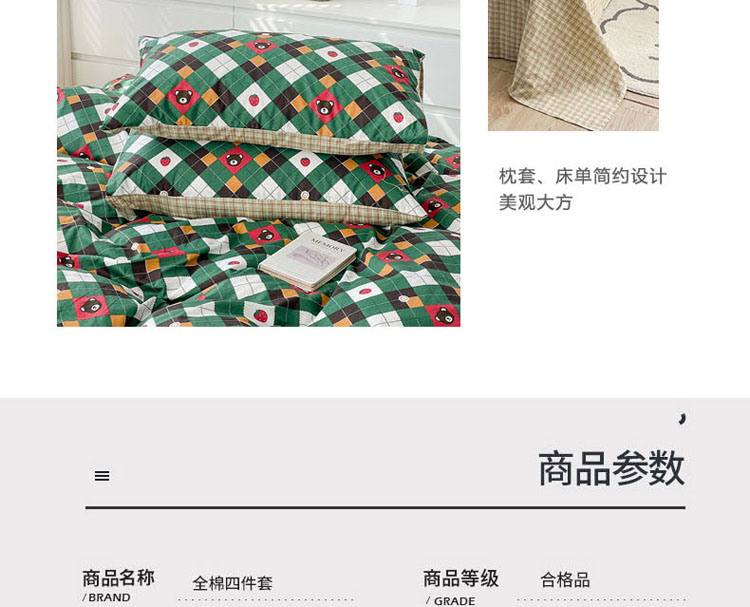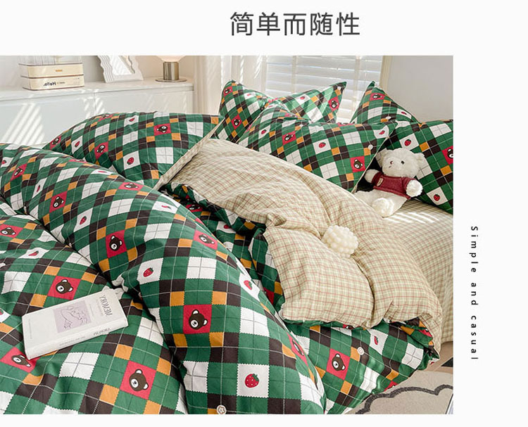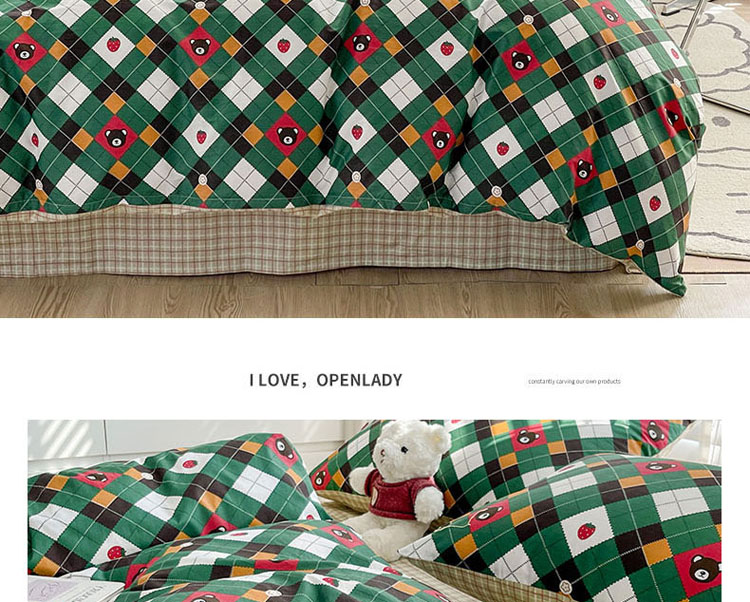 商品名称:梦家居 2023春季新品小清新系列3-全棉单被套 菱格熊