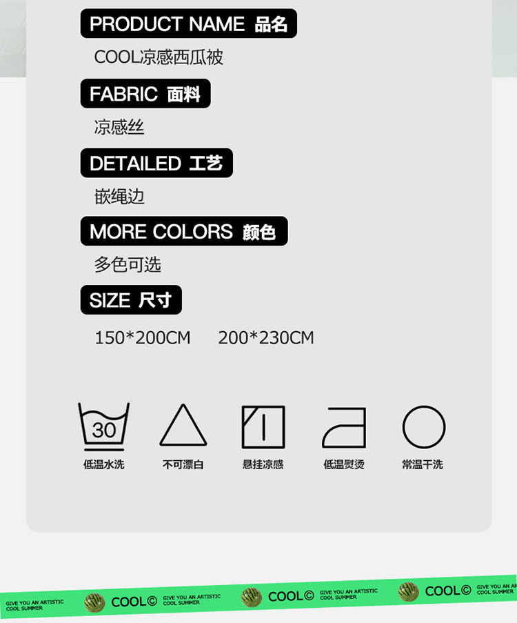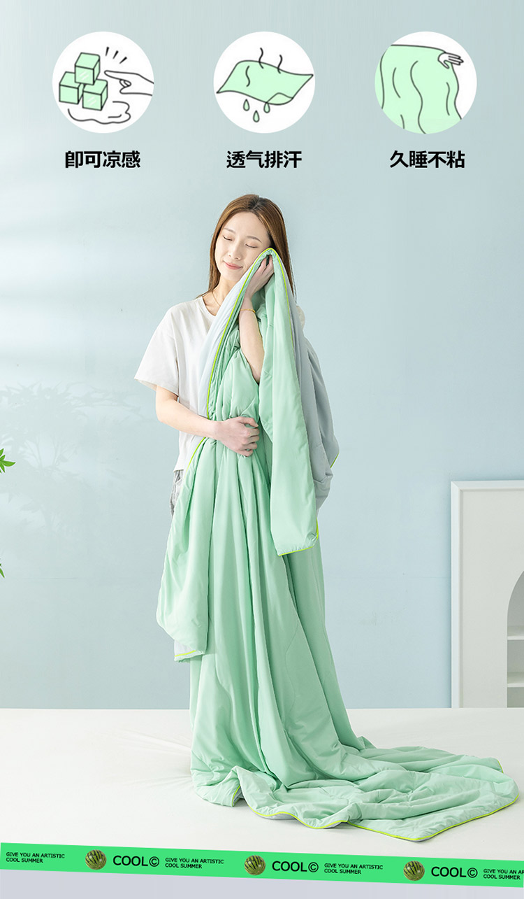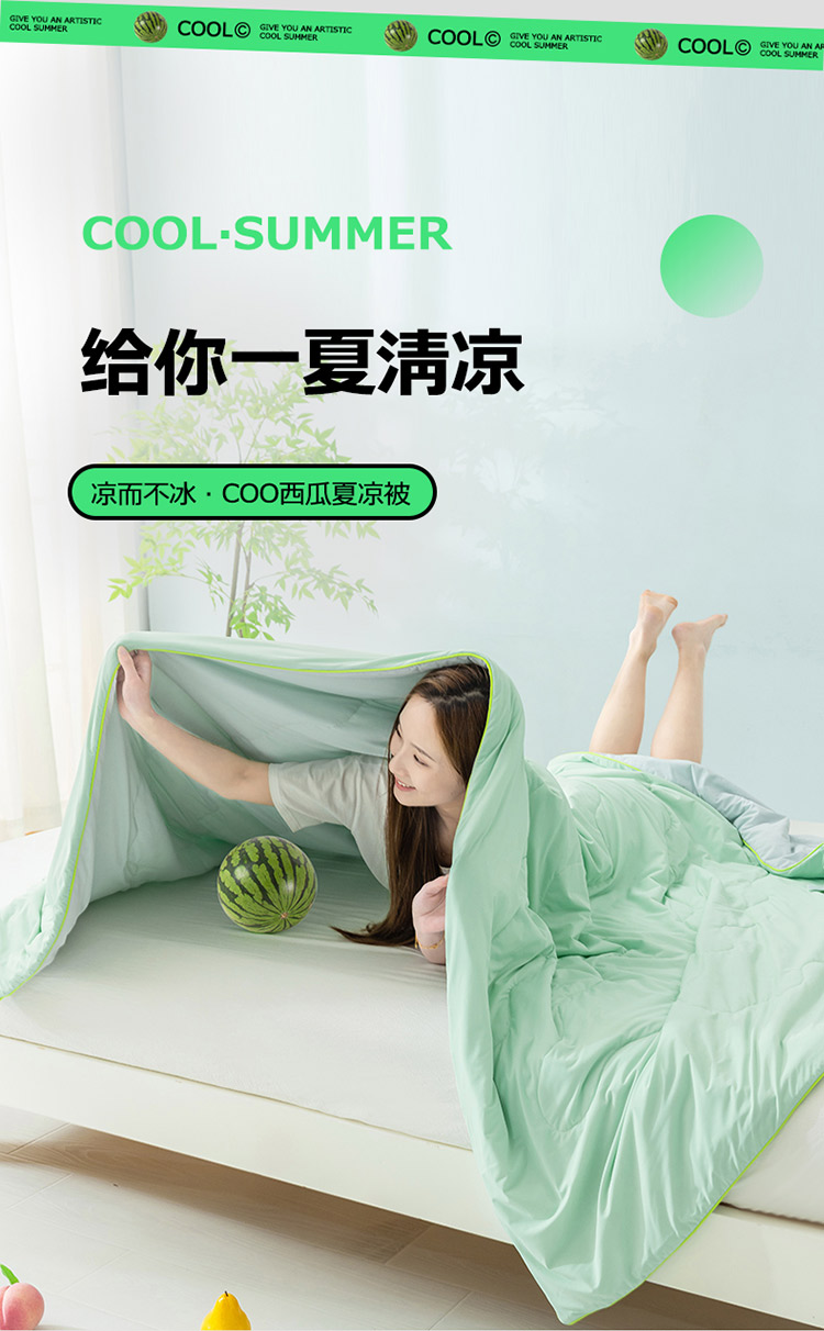商品名称:钰博家纺 瓜瓜夏凉被 果绿+浅灰