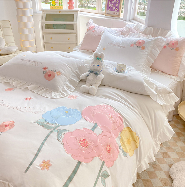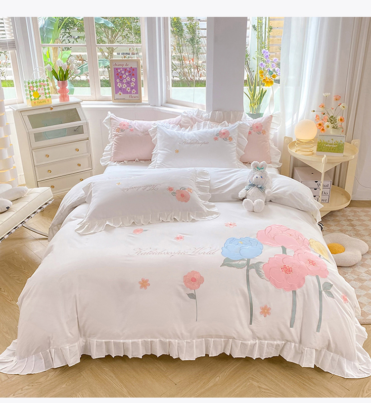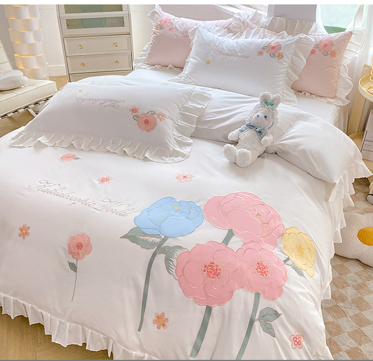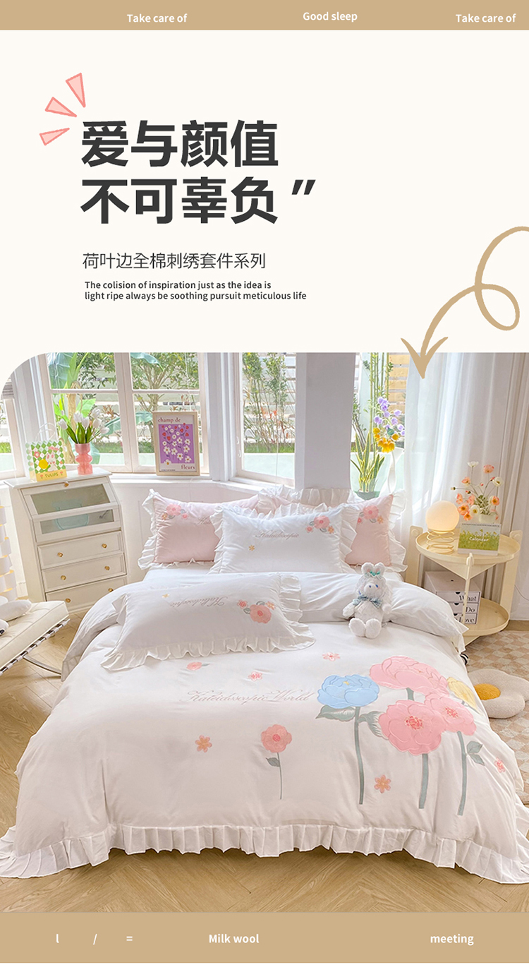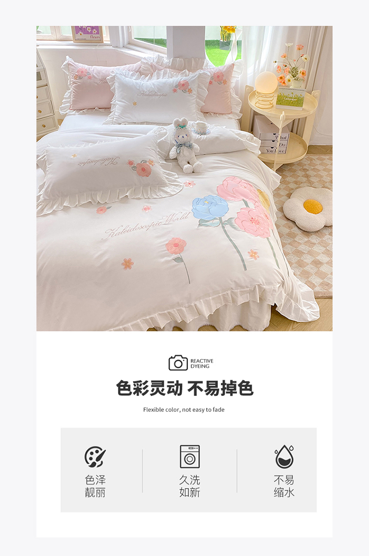 (总)迪欧芙2023新款纯棉全棉水洗棉刺绣工艺款四件套艾莉丝,艾莉丝-粉,艾莉丝-奶油白,艾莉丝-天空蓝