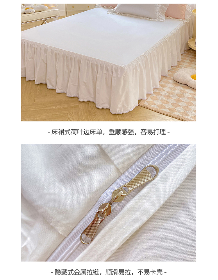 商品名称:迪欧芙 2023新款全棉喷气133*72公主风荷叶边四件套 乔安娜白