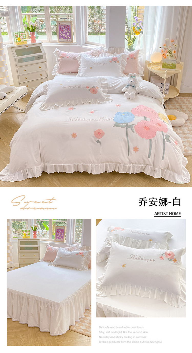 (总)迪欧芙 2024春季纯棉13372公主风四件套刺绣花边四件套爱的结语系列,爱的结语-白,爱的结语-粉,爱的结语-蓝