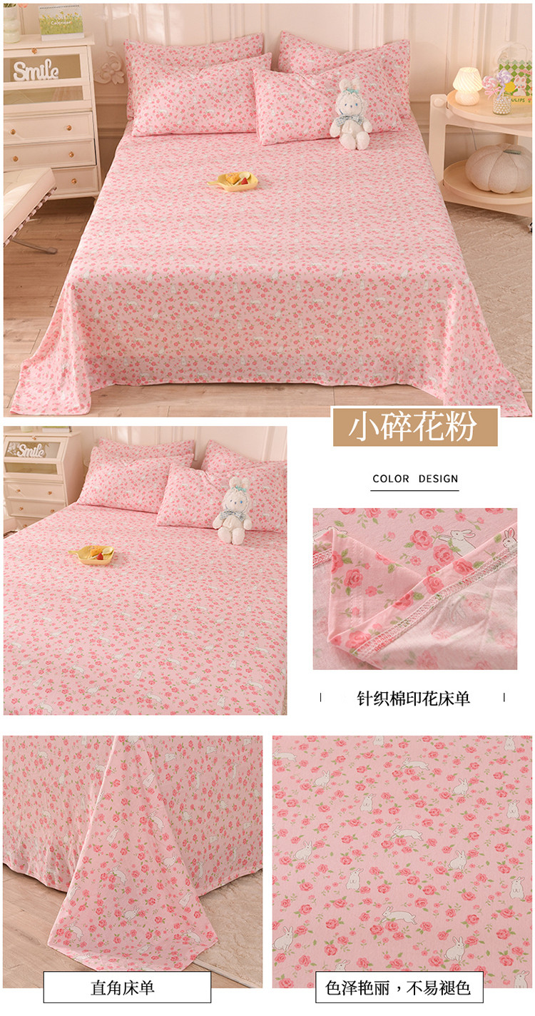 商品名称:甜之梦 2025新款针织棉印花单品床单 小碎花粉