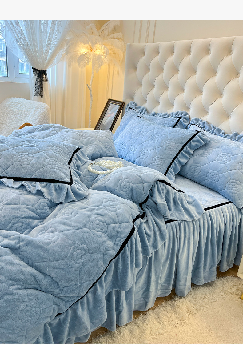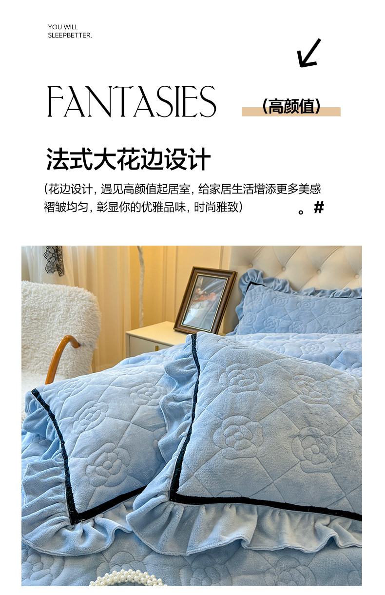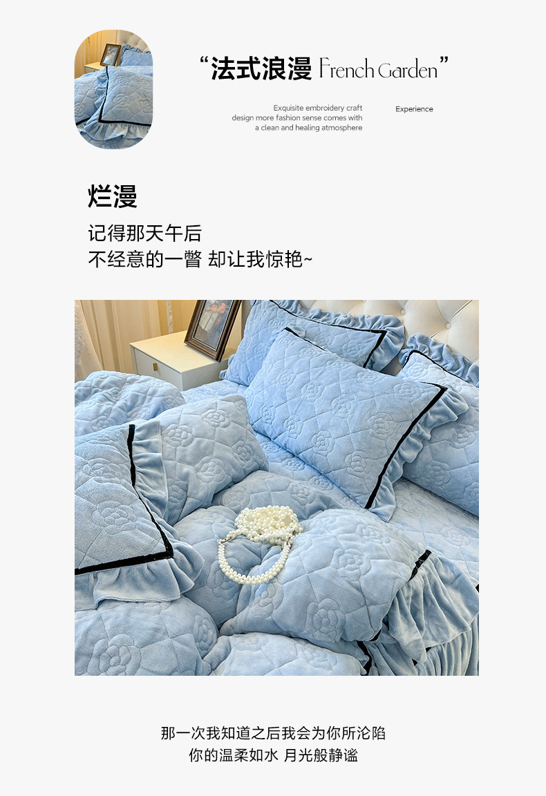 当前位置: 91家纺网 > 商品网购 > 床品套件 > 四件套 > 牛奶绒四件套 > 麒豆豆 新款高克重加厚保暖牛奶绒法式大花边四件套-眷恋 眷恋-天空蓝