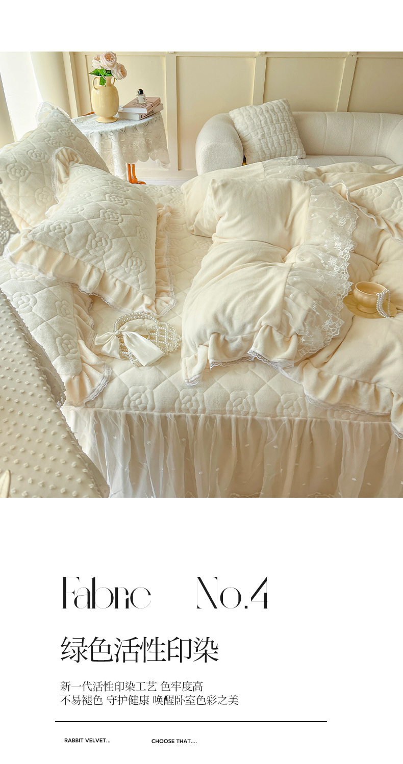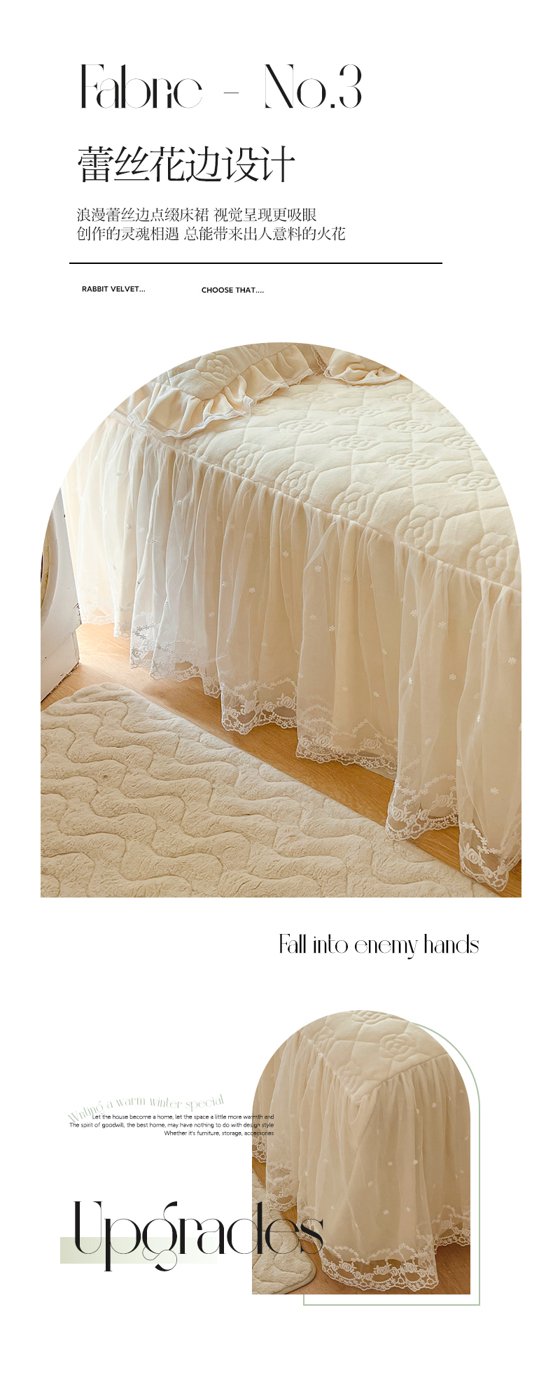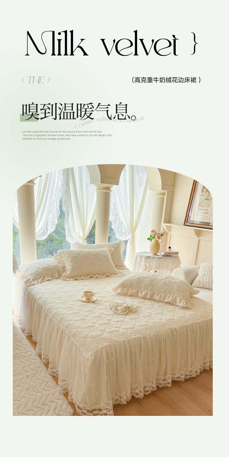 麒豆豆 2023新款高克重牛奶绒花边单床裙-山茶系列 山茶-米