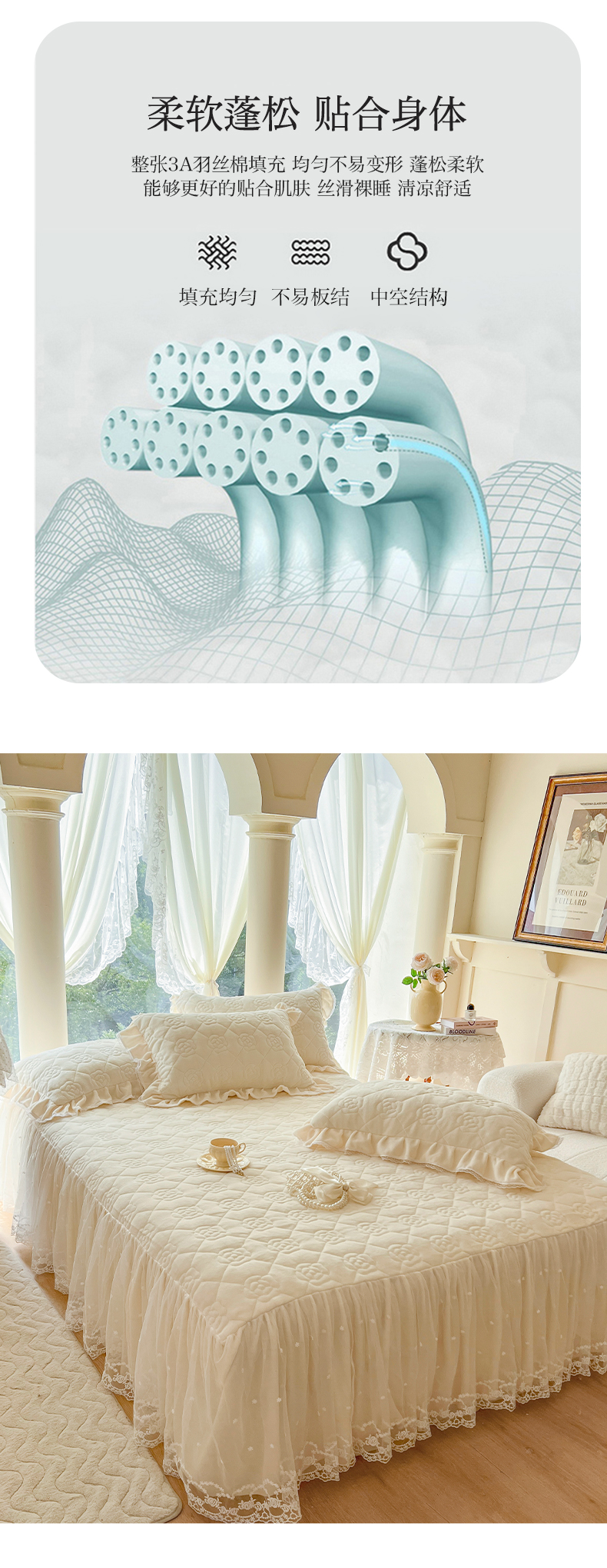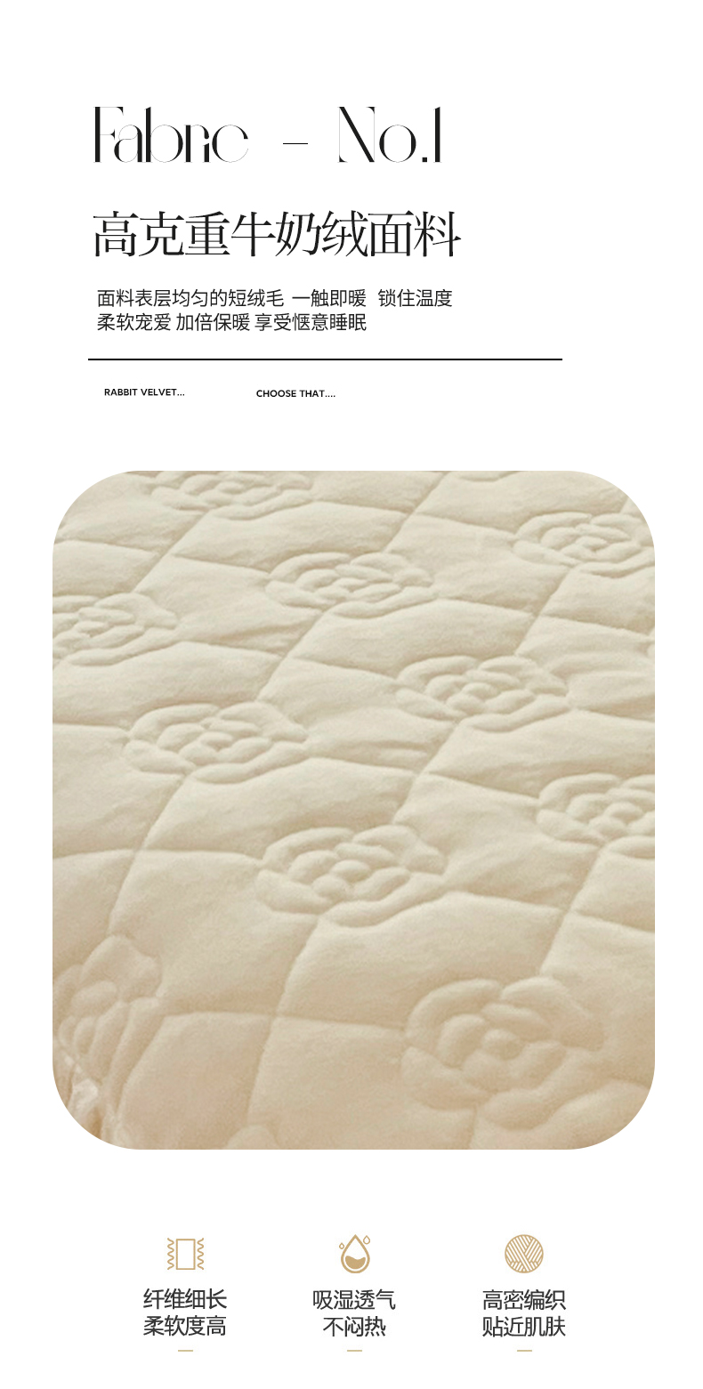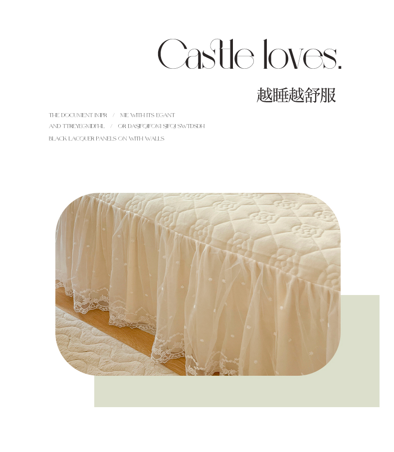麒豆豆 2023新款高克重牛奶绒花边单床裙-山茶系列 山茶-米