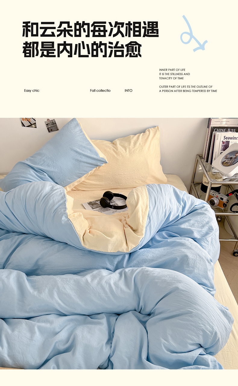 当前位置: 91家纺网 > 商品网购 > 床品套件 > 四件套 > 水洗棉四件套 > 卡斯诺 2025新款纯色双拼水洗棉四件套(下载包包含买家秀) 天蓝奶黄