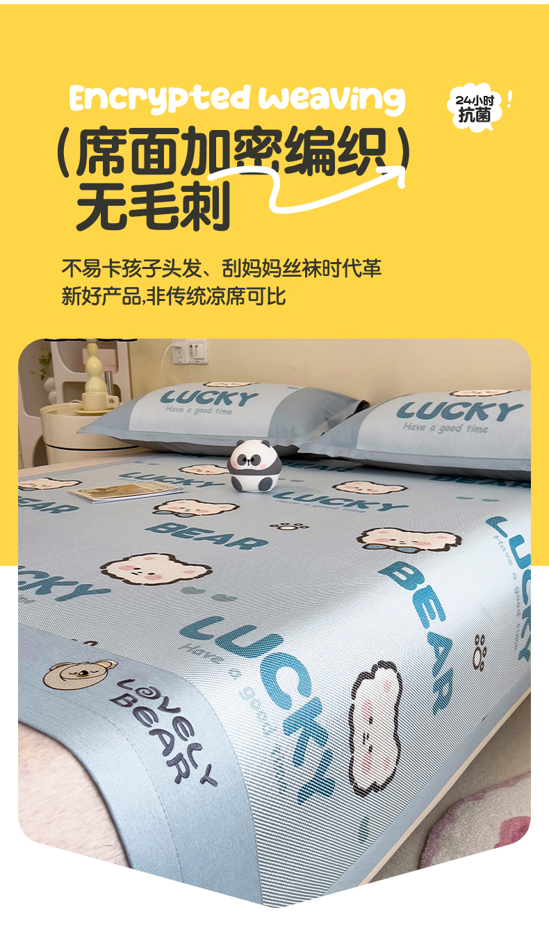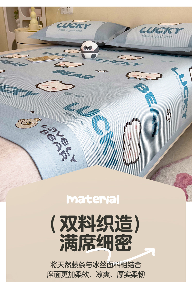 当前位置: 91家纺网 > 商品网购 > 床上用品 > 凉席 > 其他凉席 > 全季家居 2024新款A类抗菌数码印花冰藤席三件套 床席款-幸运熊
