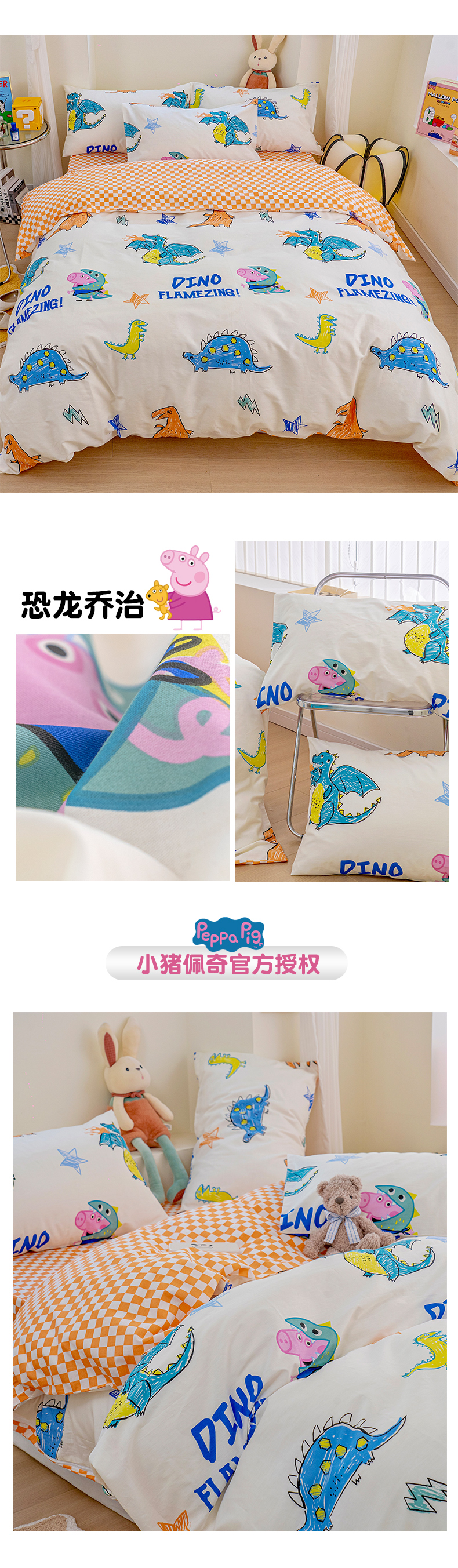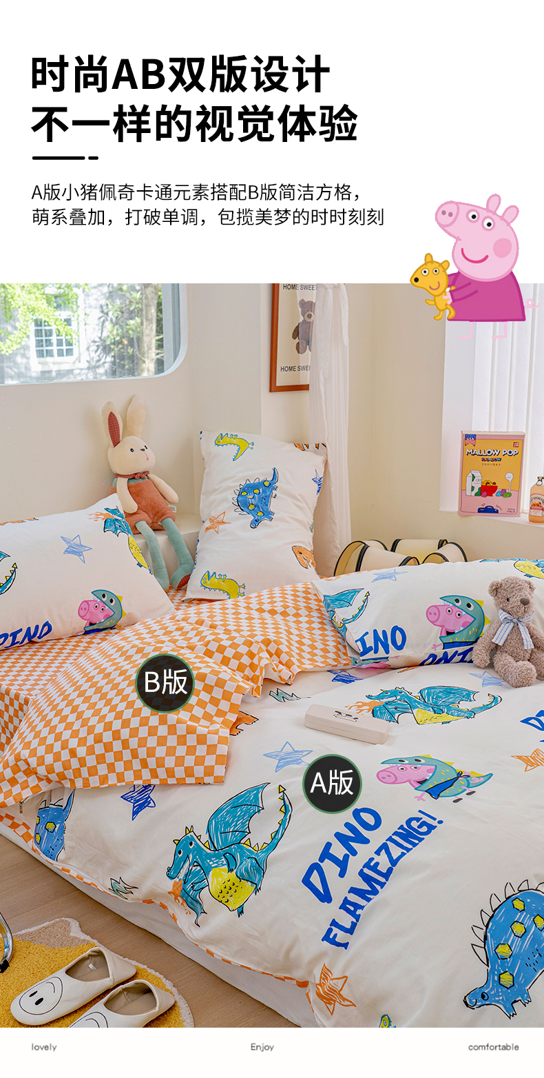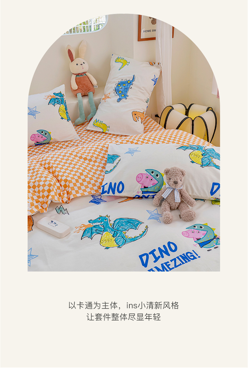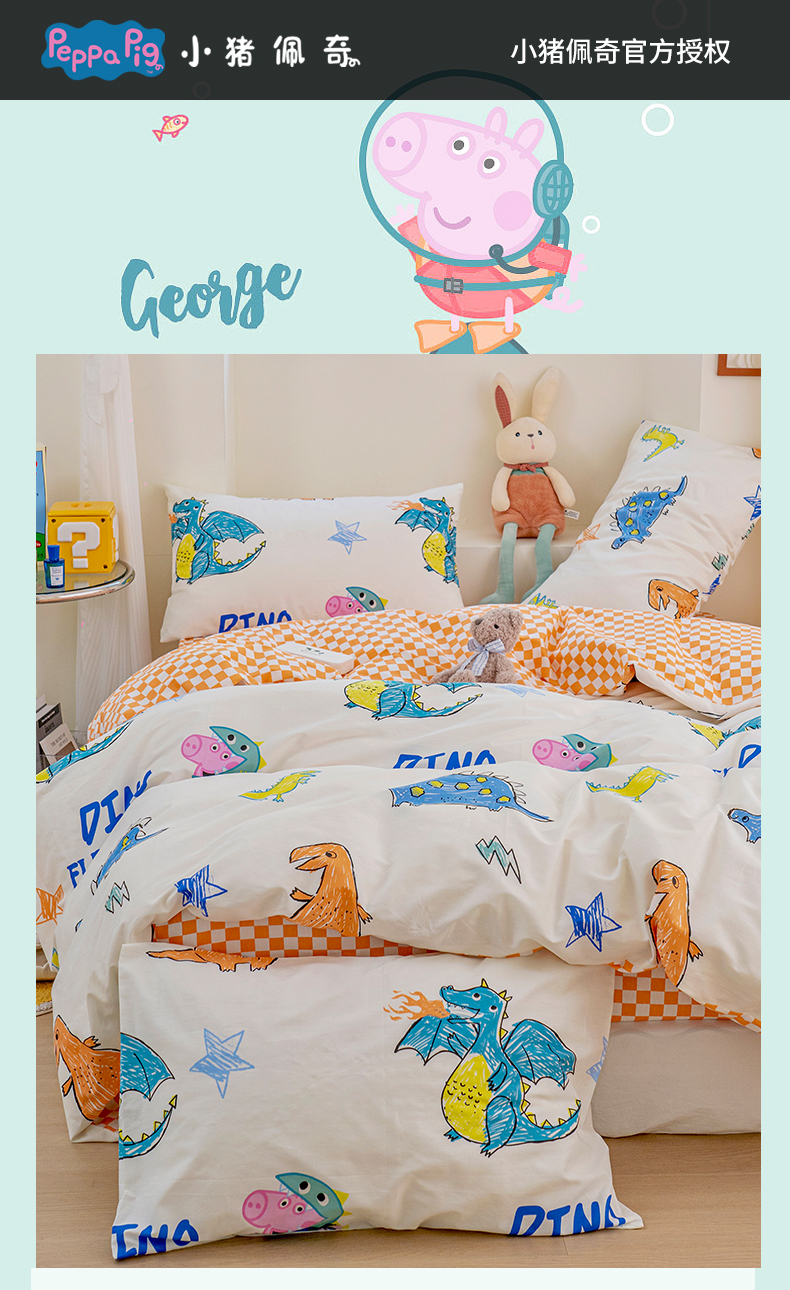 商品名称:朵希曼 2026新款AB版全棉小猪佩奇系列四件套 恐龙乔治