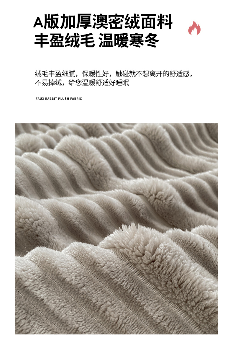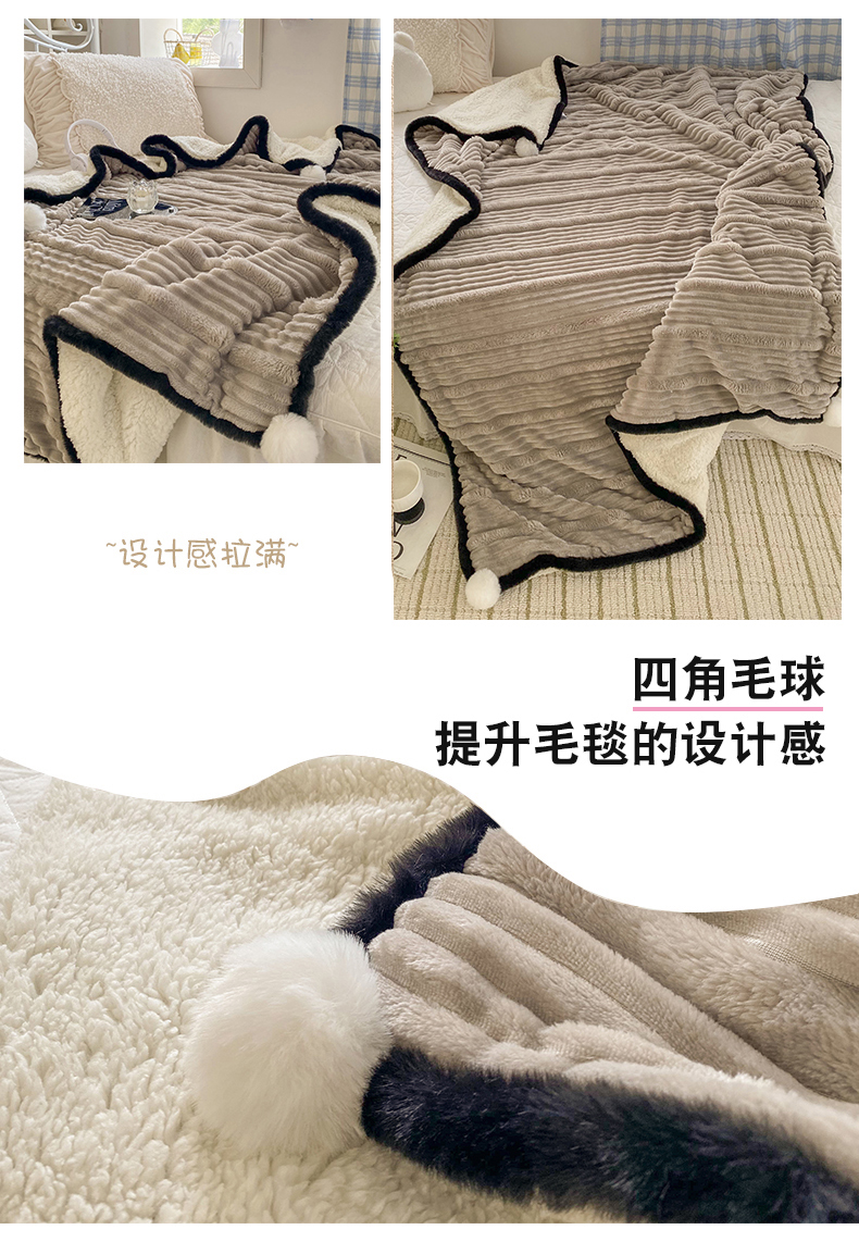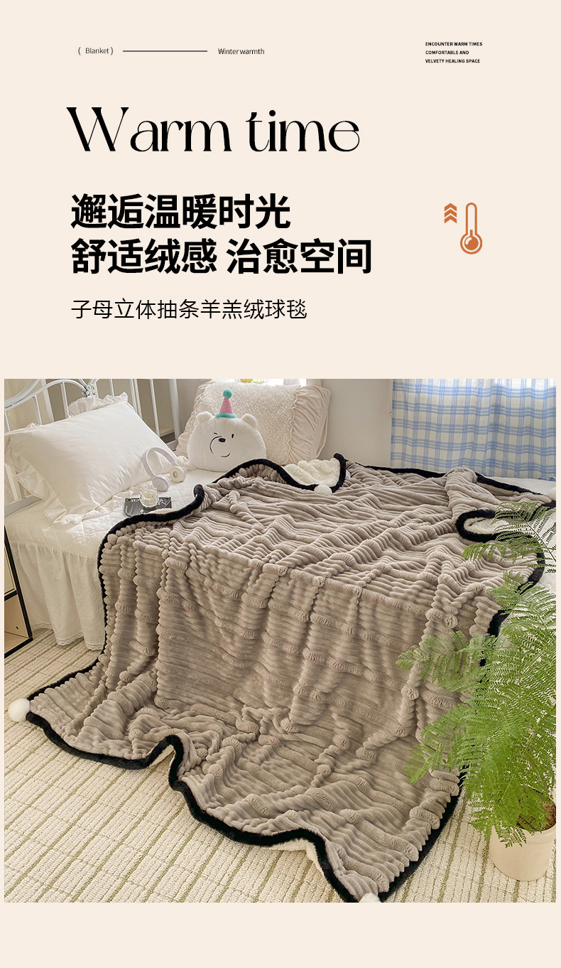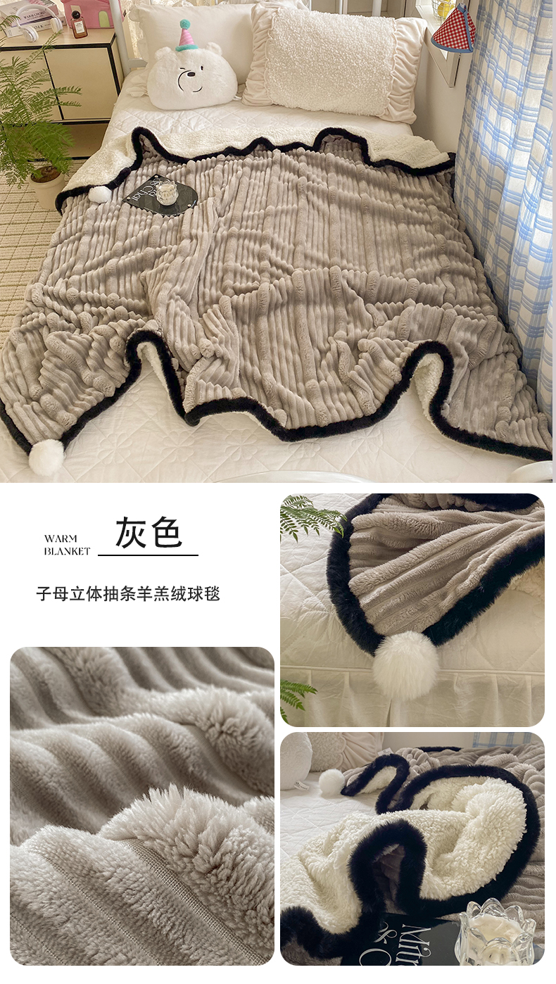 商品名称:潮邦 2025秋冬子母抽条羊羔绒球毯 子母抽条球毯-灰色