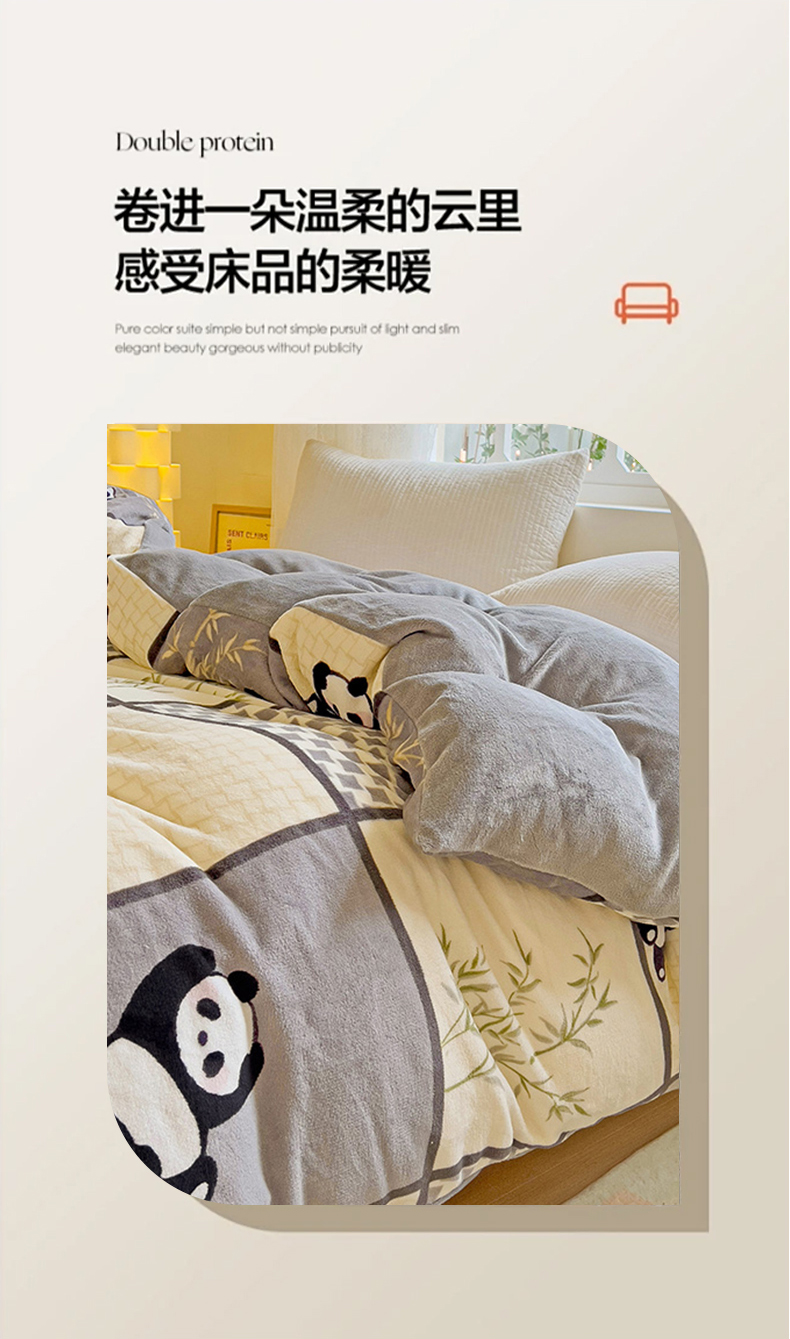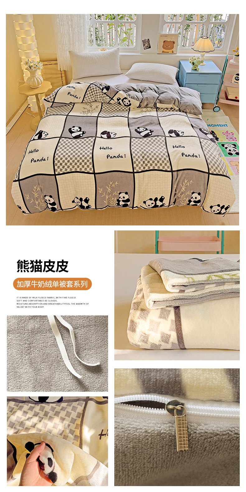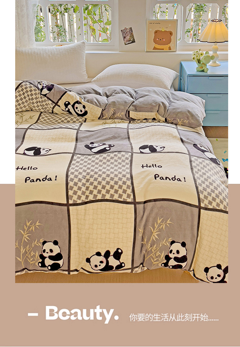 卡普二店 2024新款牛奶绒印花单被套 熊猫皮皮