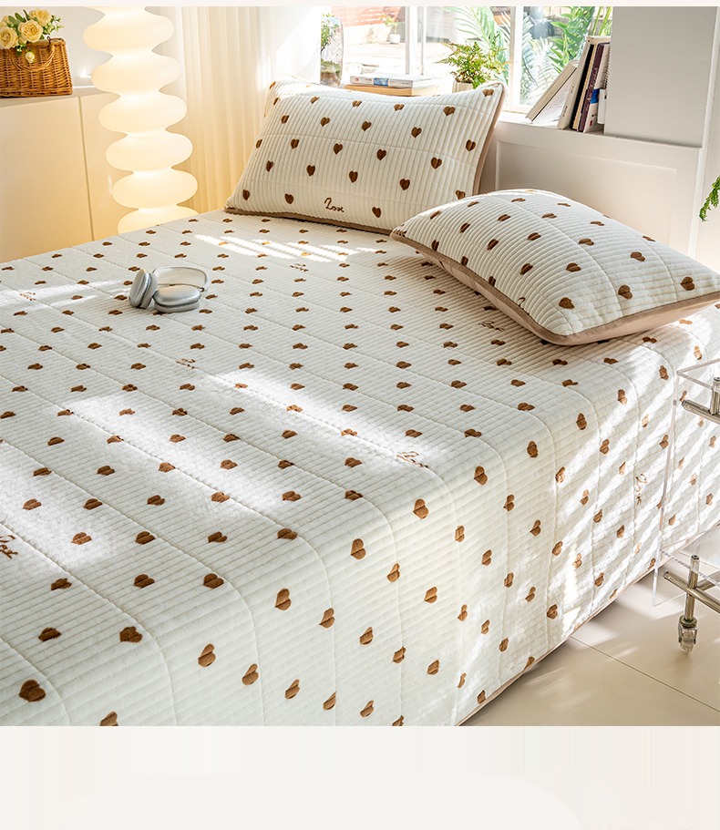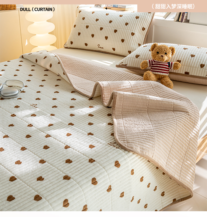 X猫先生 2024新款牛奶绒床盖床垫小清新印花夹棉水洗棉炕盖双面两用 咖心