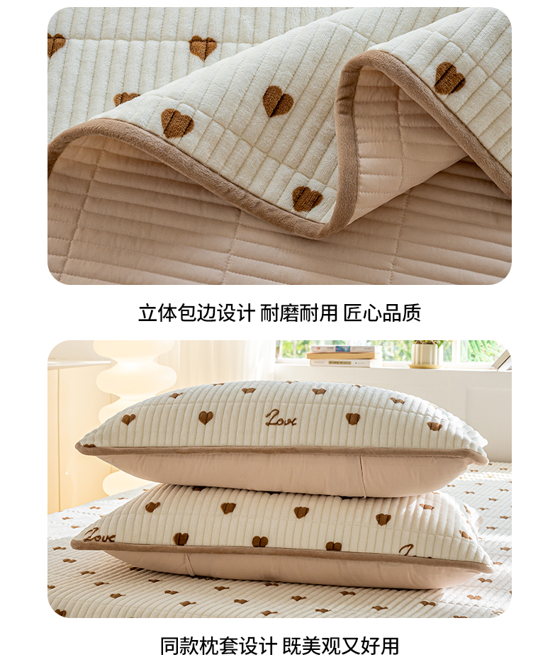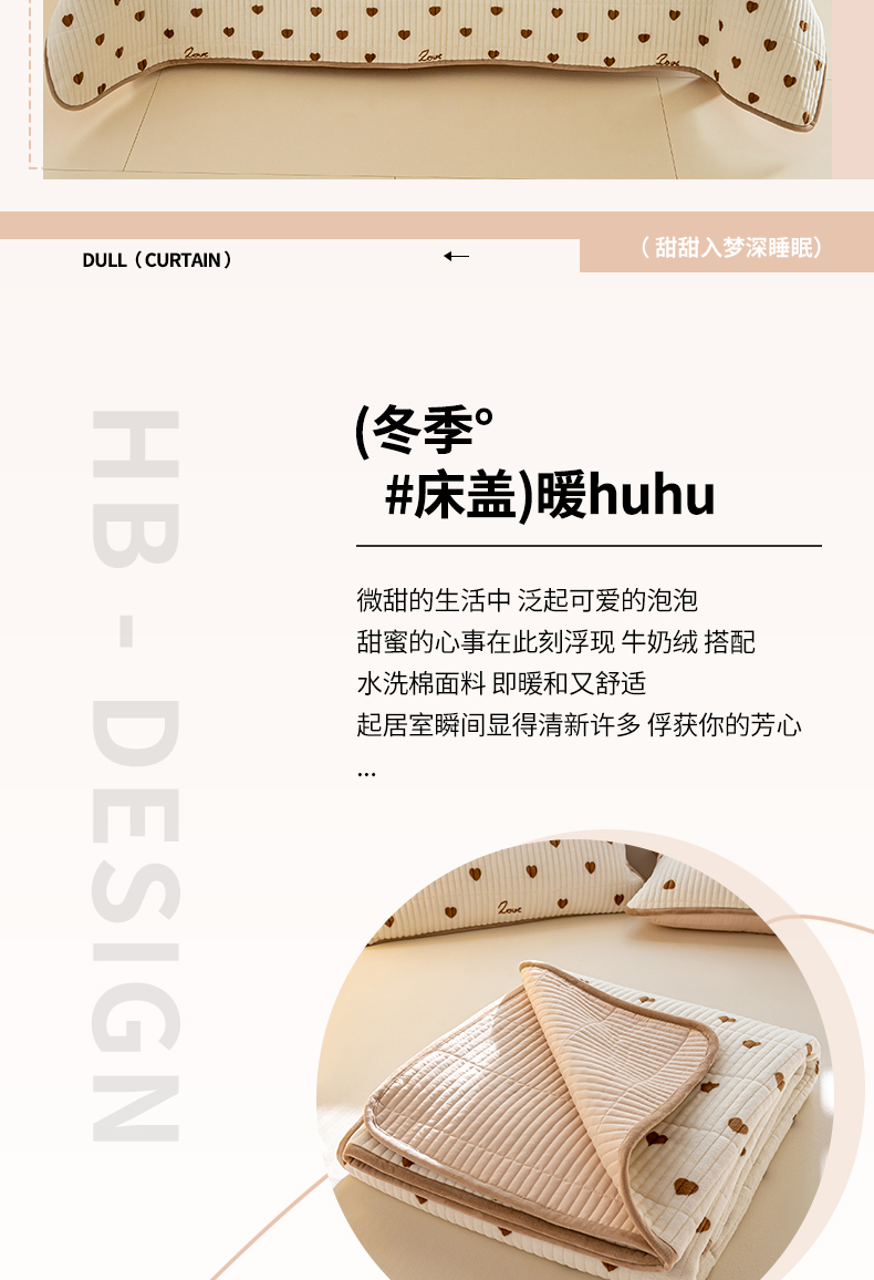 • 91家纺网 家纺一手货源 找家纺 X猫先生 2024新款牛奶绒床盖床垫小清新印花夹棉水洗棉炕盖双面两用 咖心